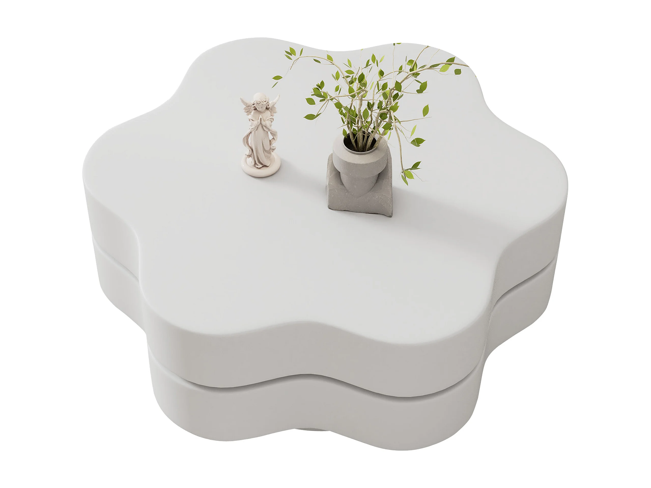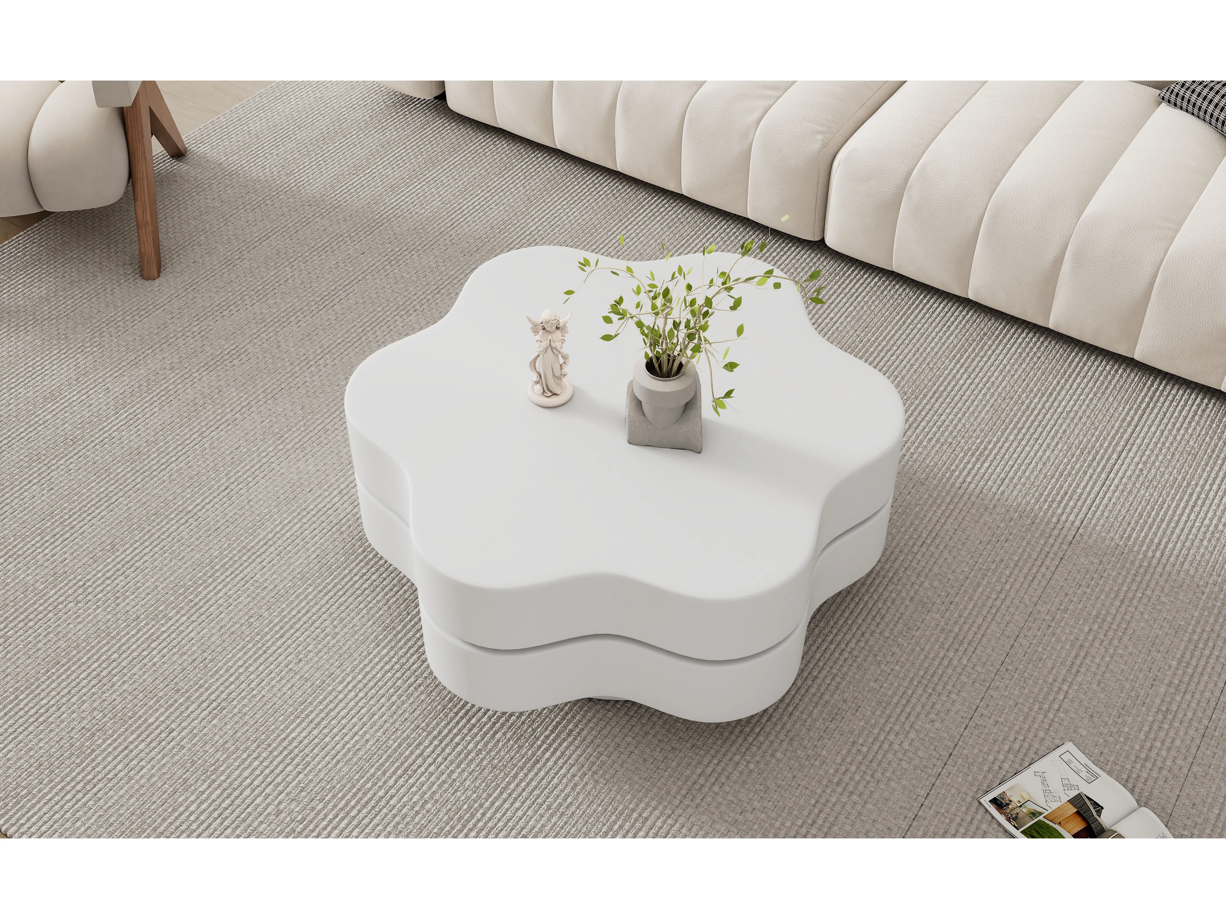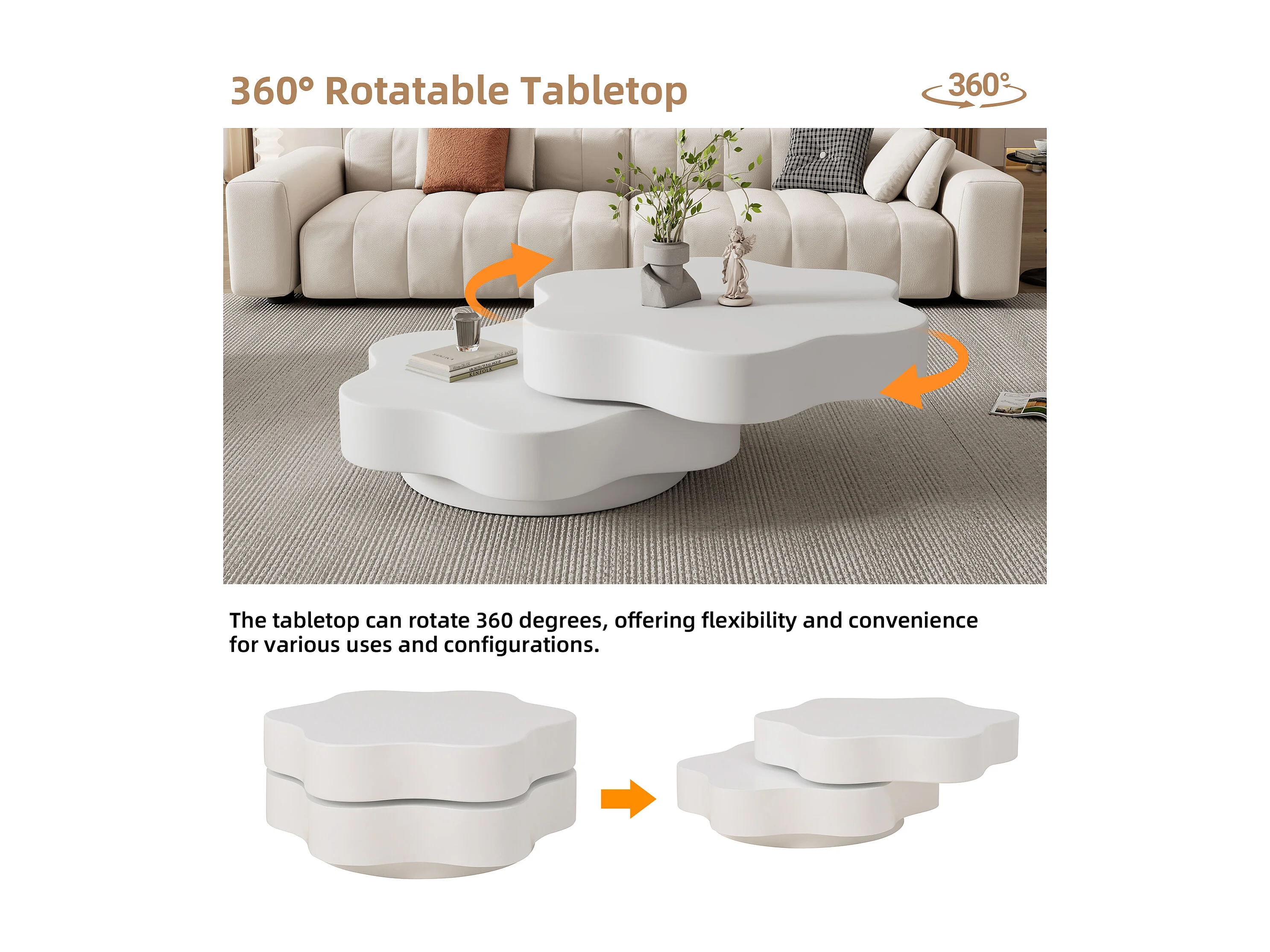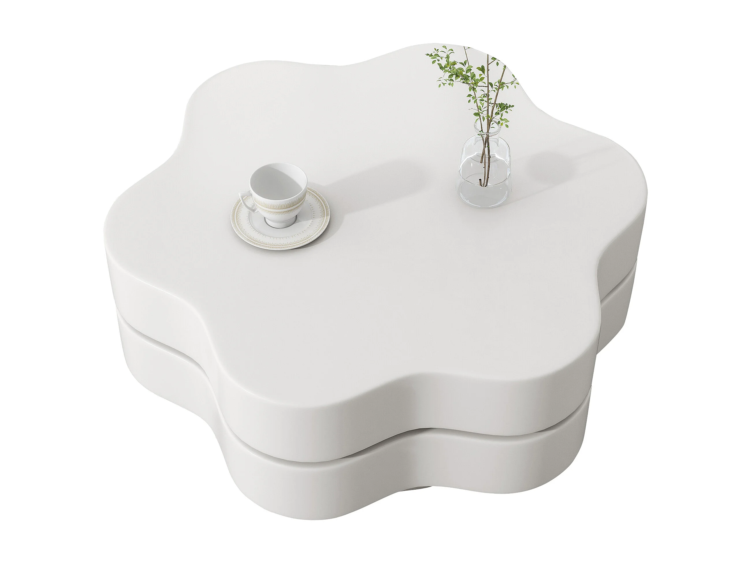 Ronde salontafel met 360° draaibaar blad en LED, bloemmotief, MDF, crème (74,8x67,5x31 cm)