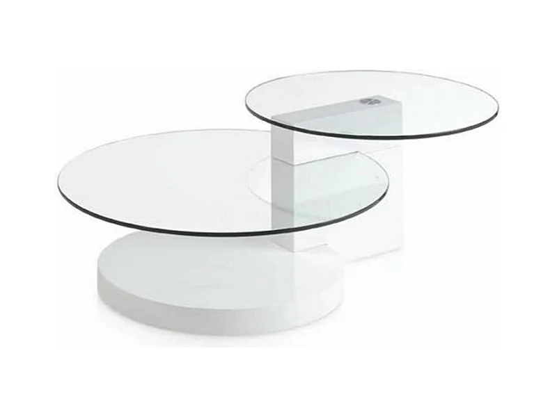 Ronde salontafel met blad van gehard glas en wit gelakte houten poten Lina-Kleur As