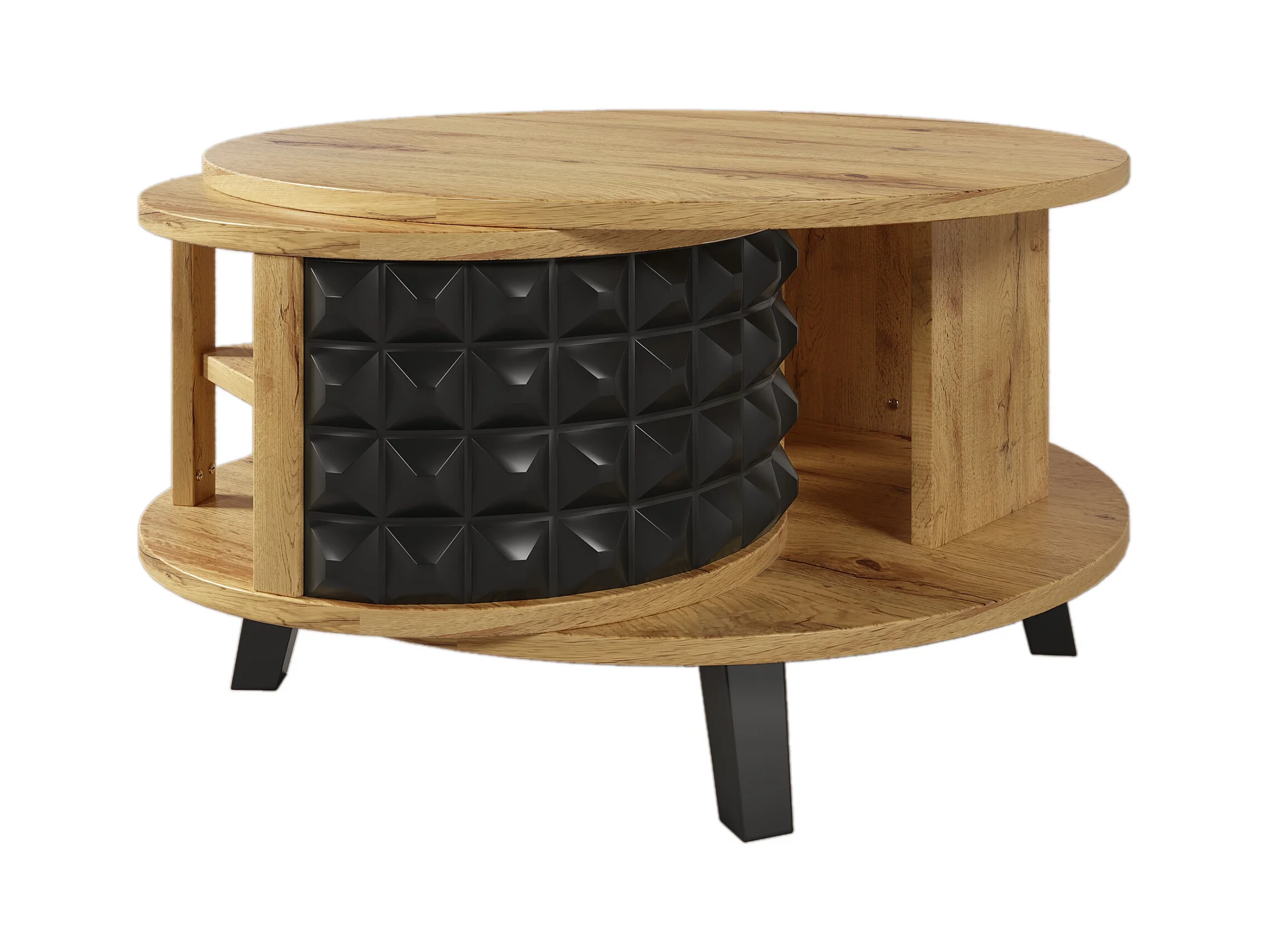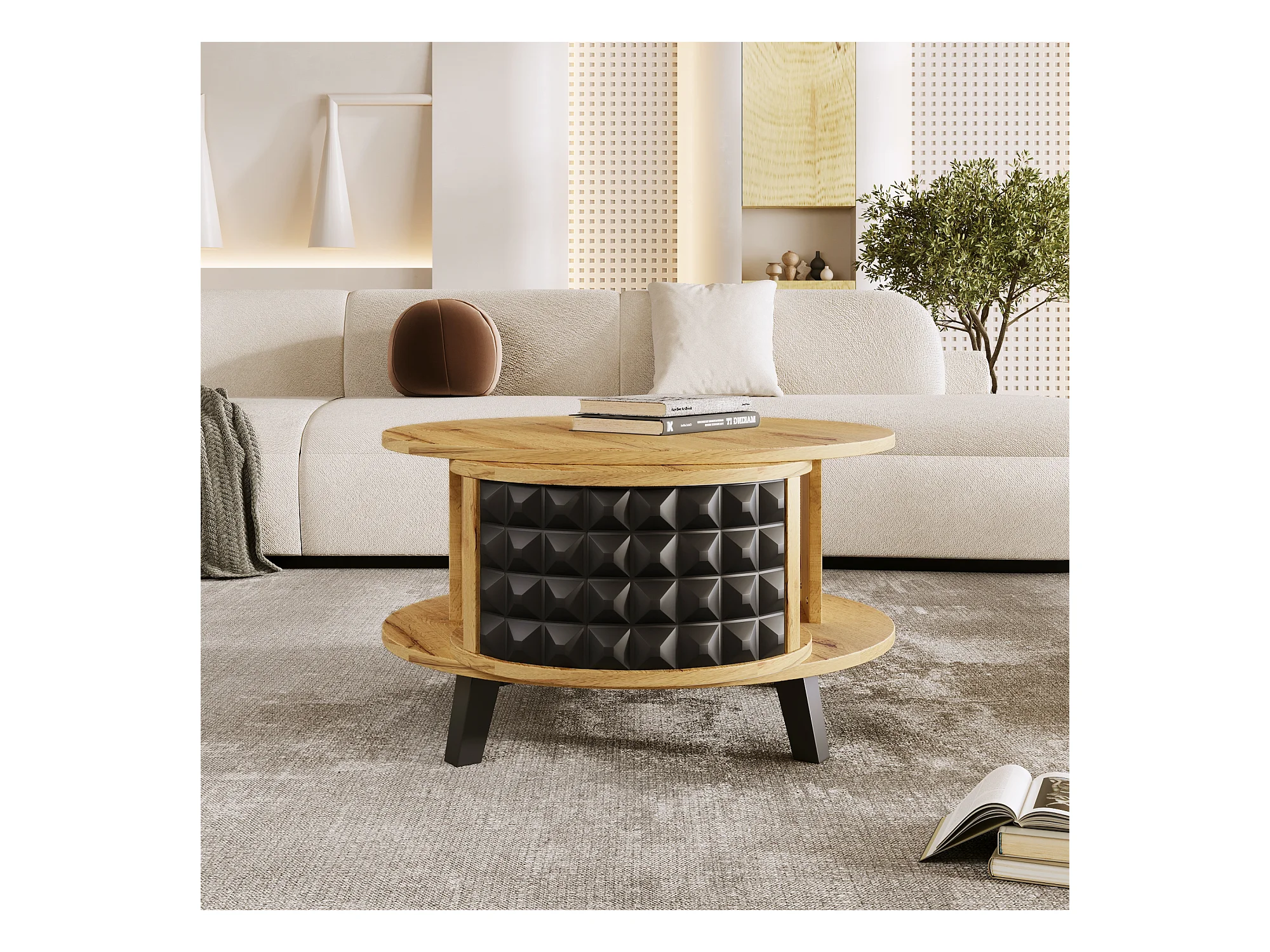Ronde salontafel met draaibare opbergplanken - 85,2 x 80 x 45,2 cm - spaanplaat - naturel + zwart