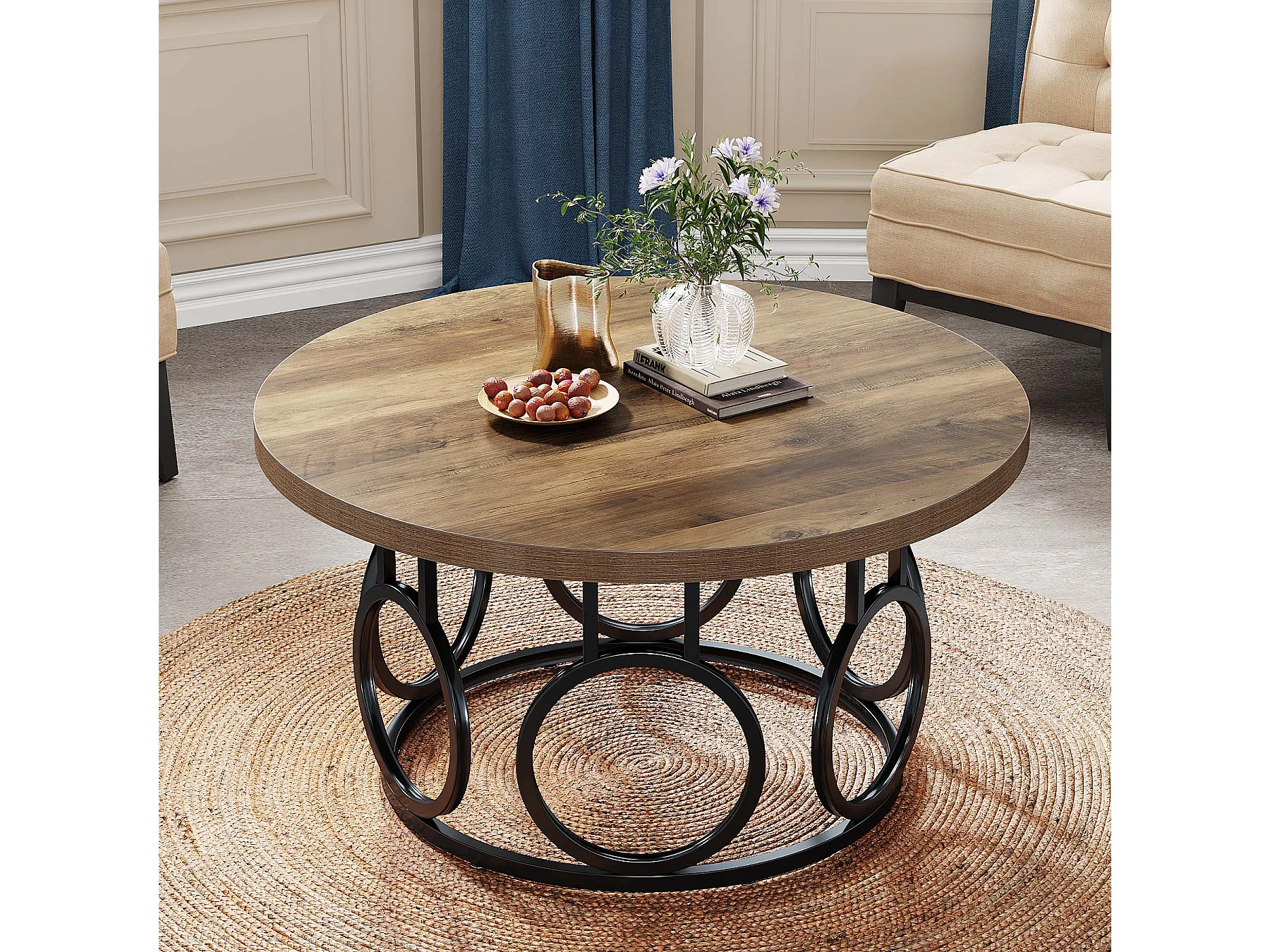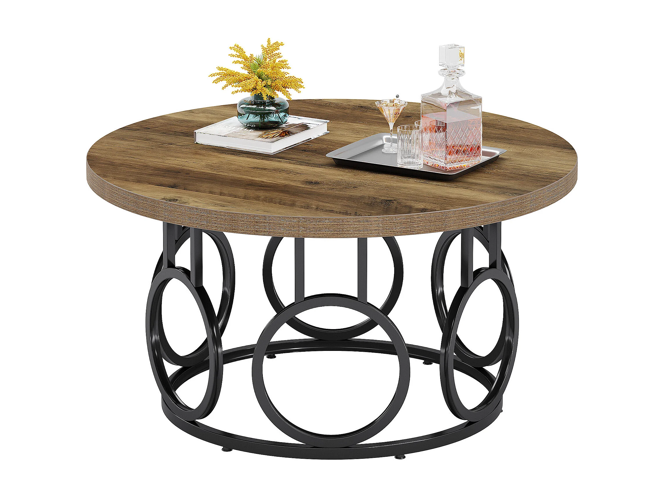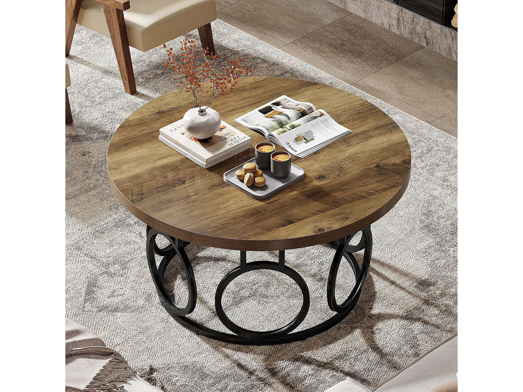 Tribesigns 80cm ronde salontafel, boerderij salontafel met metalen onderstel, moderne accenthouten salontafel, bank, bijzettafel voor woonkamer, thuiskantoor, houtnerf