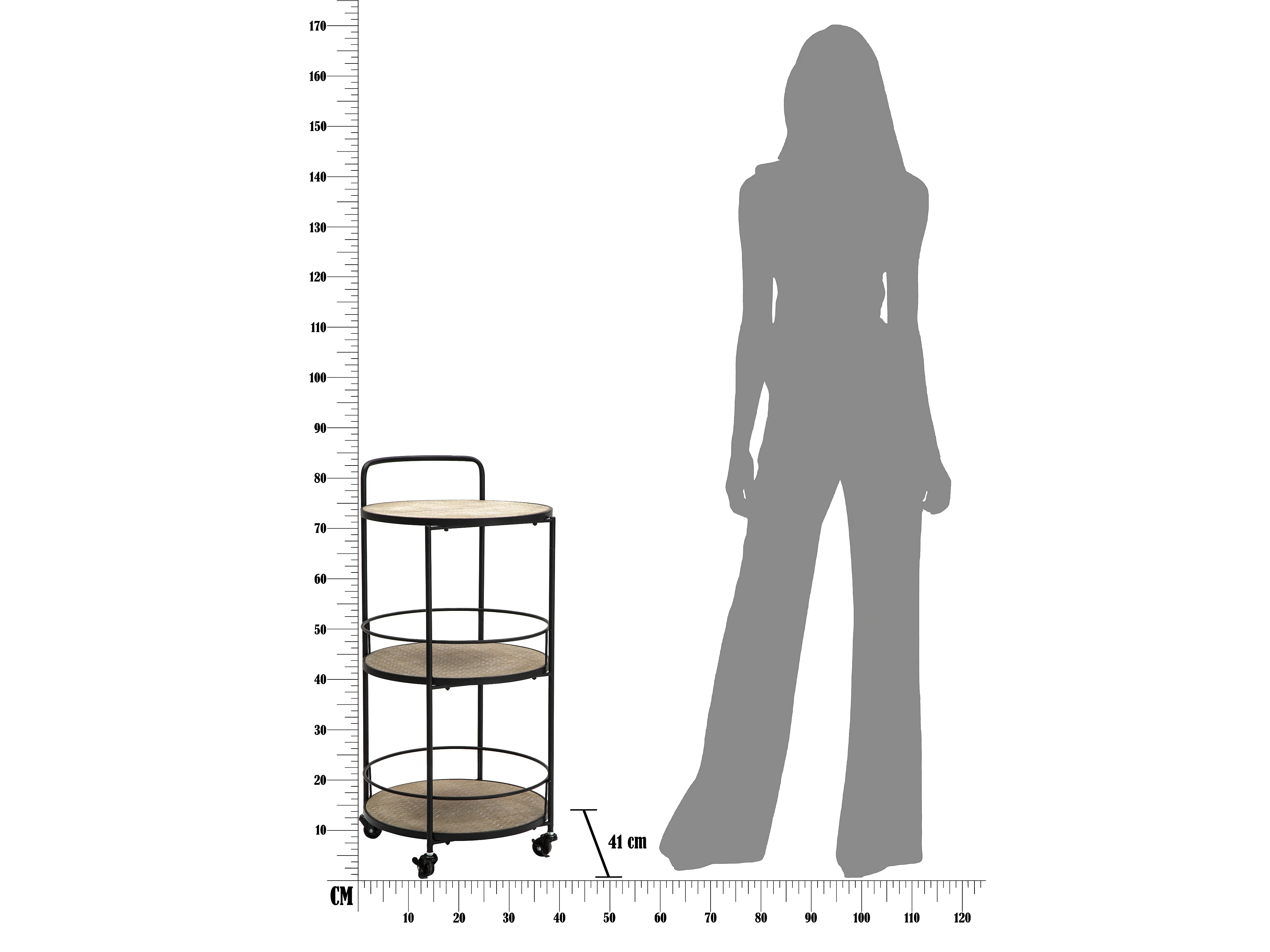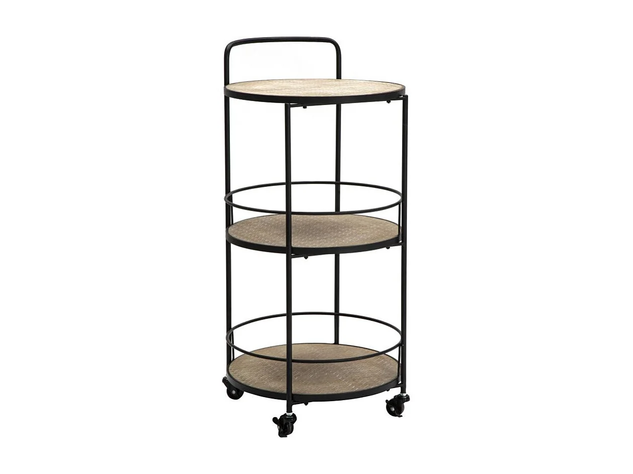 Trolley met 3 planken in bruin en zwart metaal Ø cm 60x30x80
