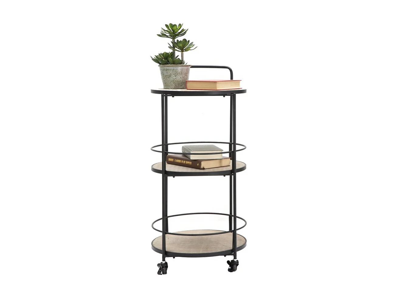 Ronde, veelkleurige metalen trolley met 2 planken, 40x41,5x82 cm