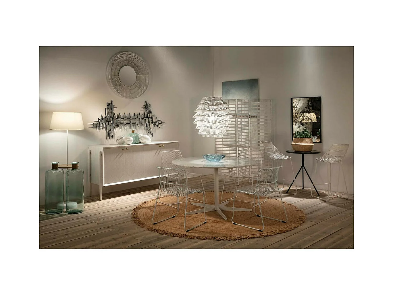 Ronde witte rieten wandspiegel Gaell D 90 cm