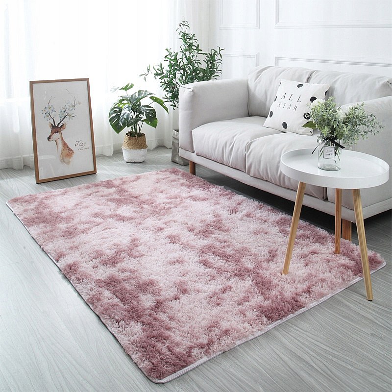 Roze pluche shaggy vloerkleed rabbit 150x100 cm dik bont XL