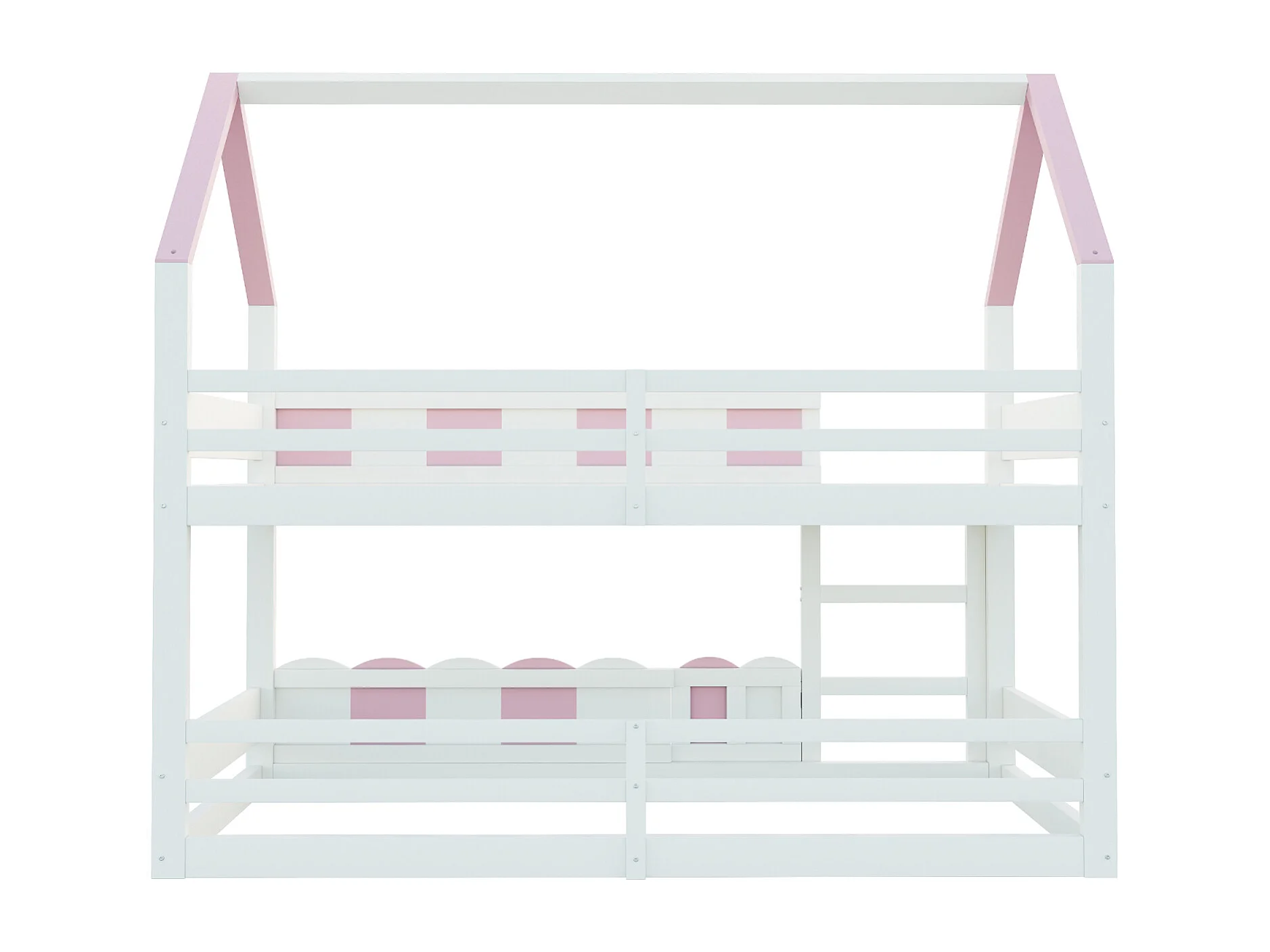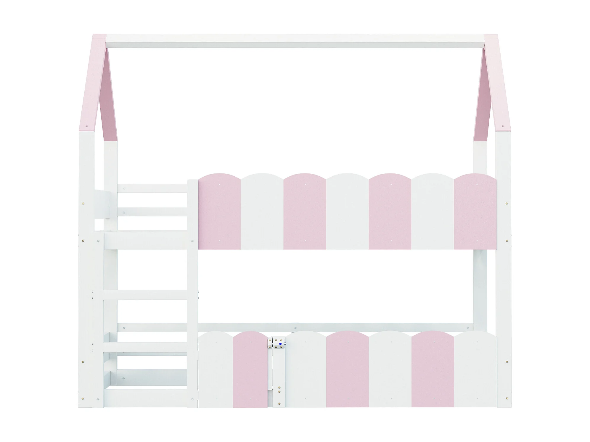 Roze stapelbed 90x200 cm voor kinderen met hoge leuningen en bovenste lattenbodem, veilig en praktisch