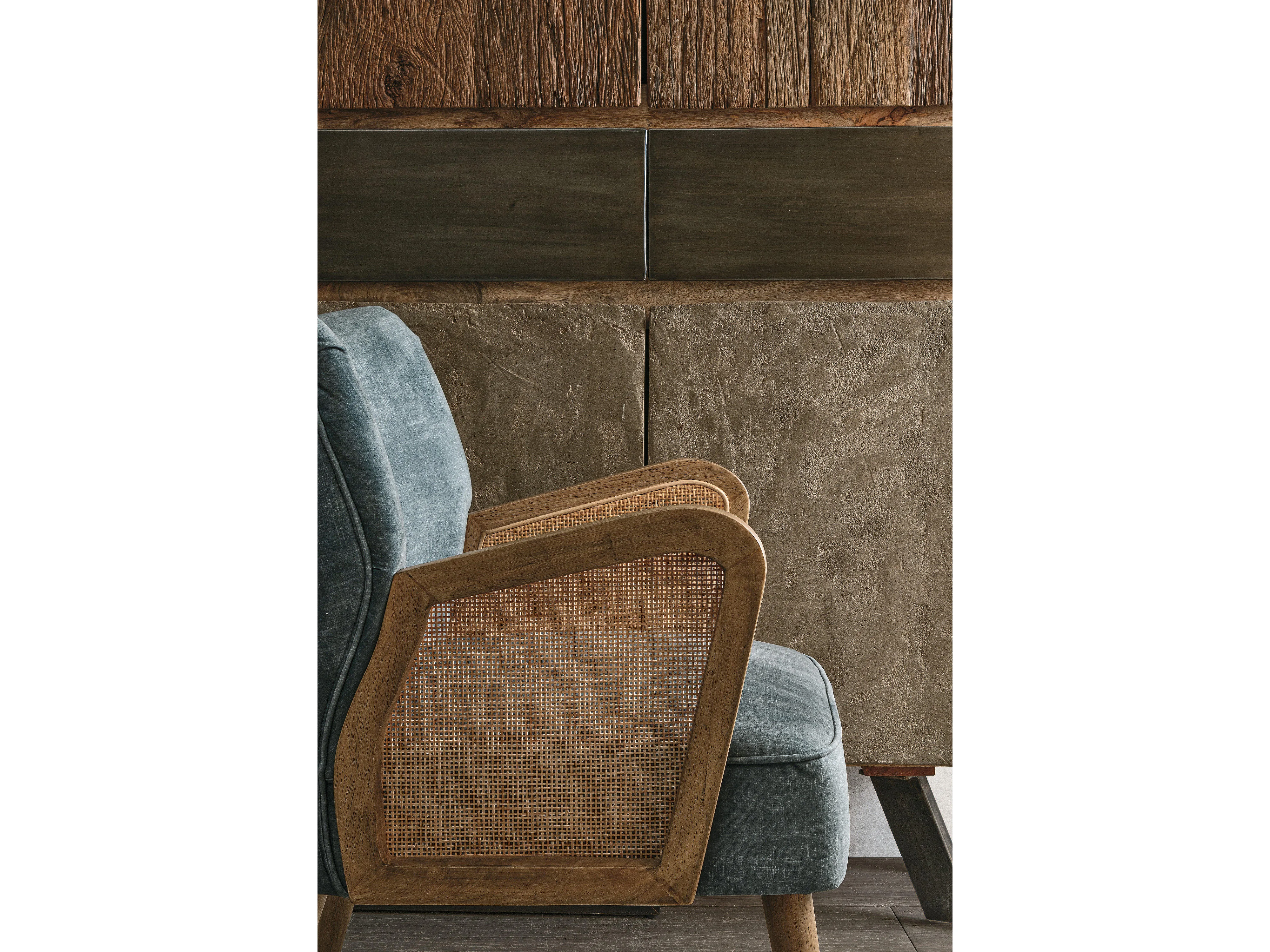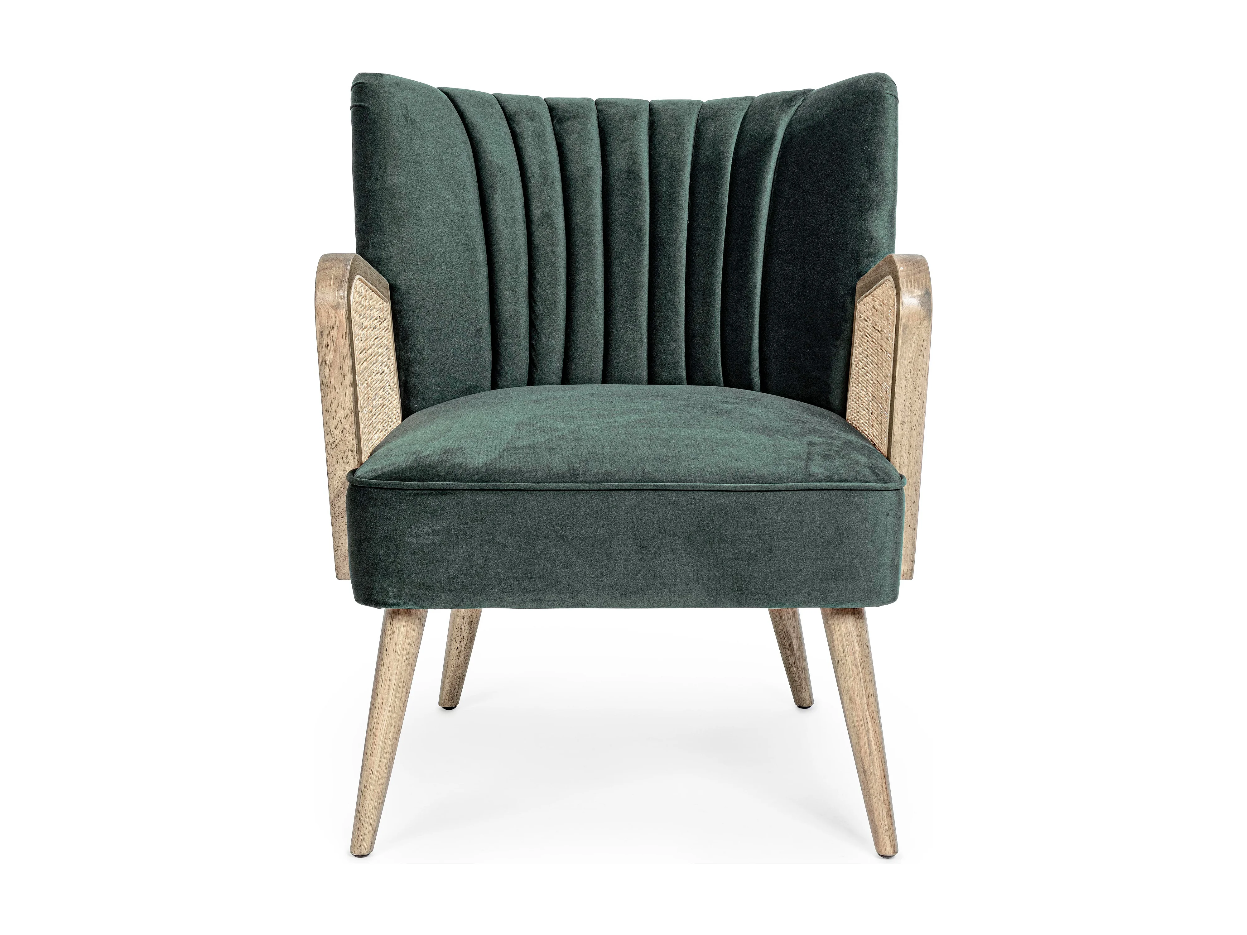 Rucha fauteuil van natuurlijk hout en rotan met groen fluwelen zitting 64 cm