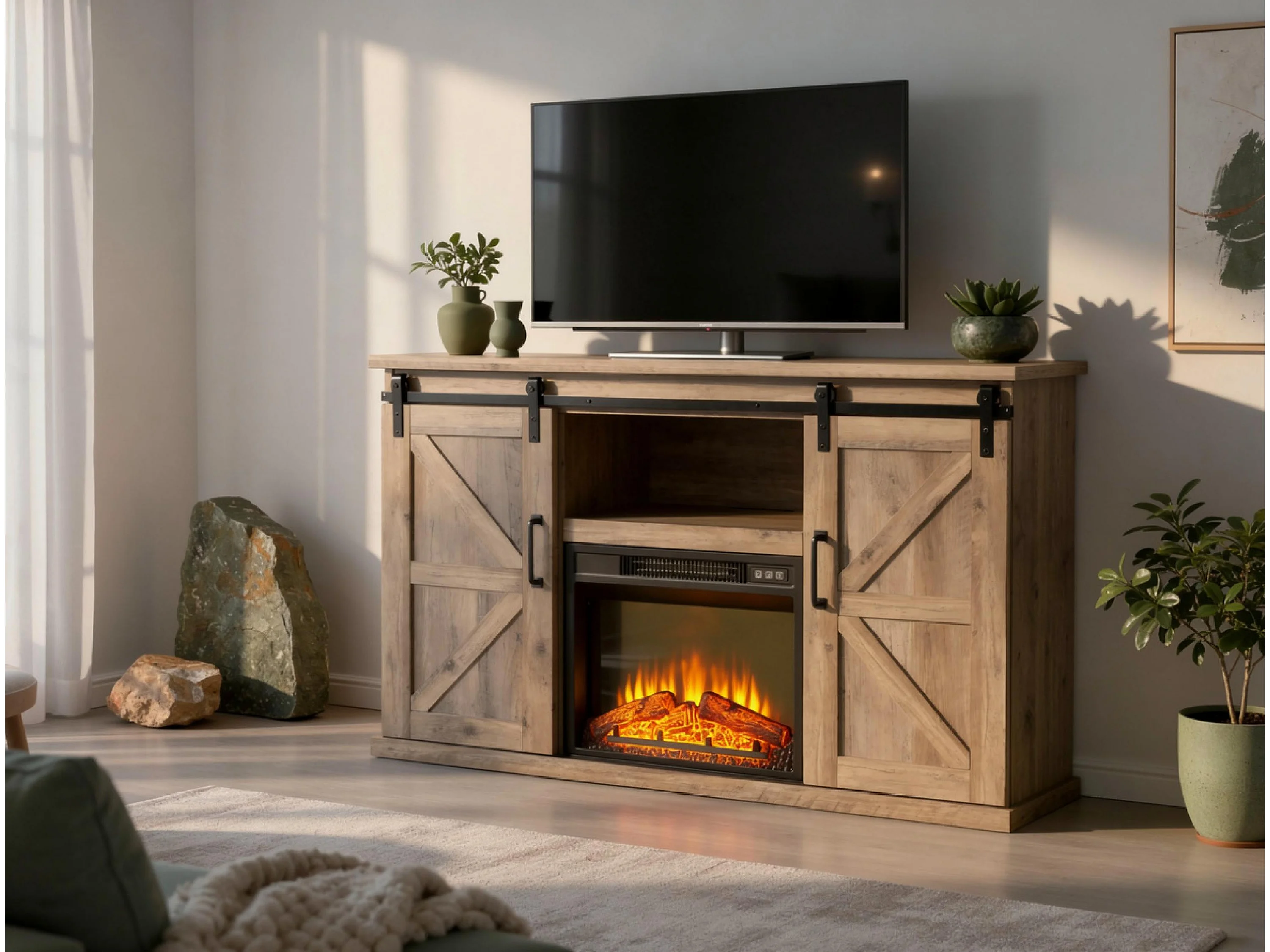 Rustiek dressoir met elektrische haard 2000W