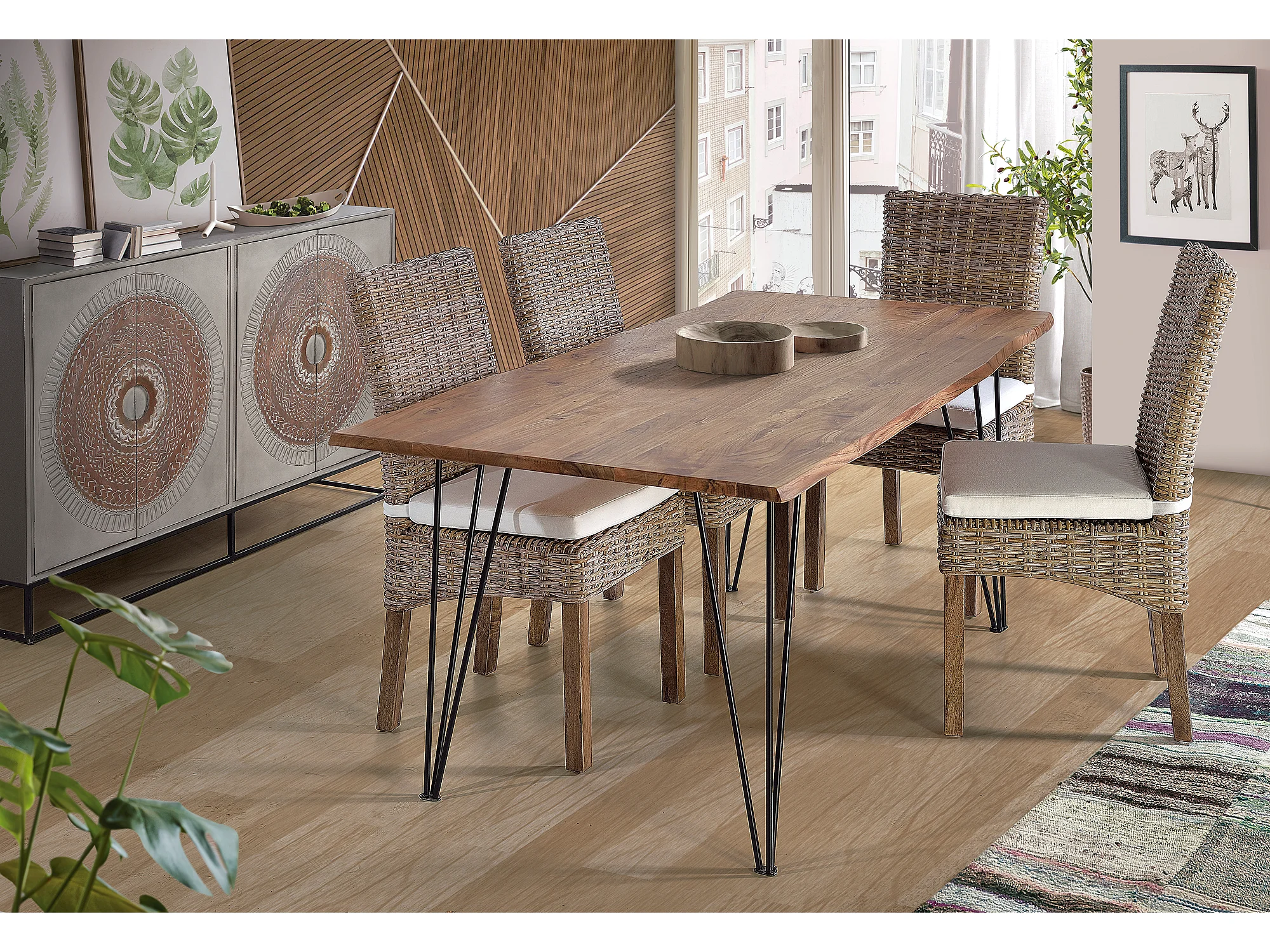 Tabel à manger en bois manguier et metal