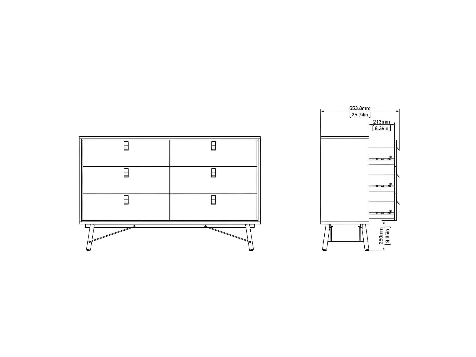 Rye Ladekast breed 6 laden mat wit.