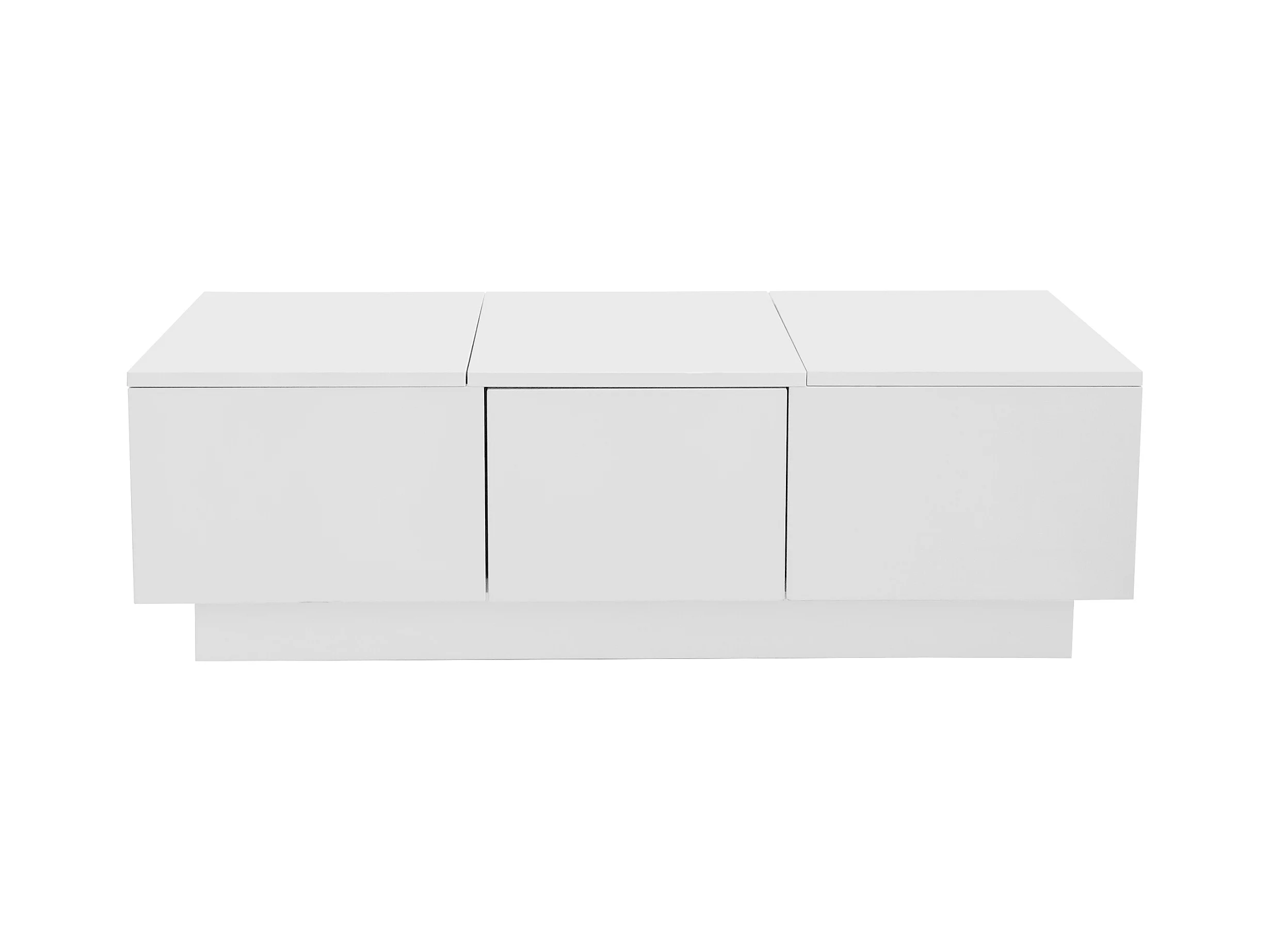 Salontafel 100x50x31cm met hoogglans tafelblad verborgen opslagvakken en twee laden brengen Materiaal Spaanplaat en Wit
