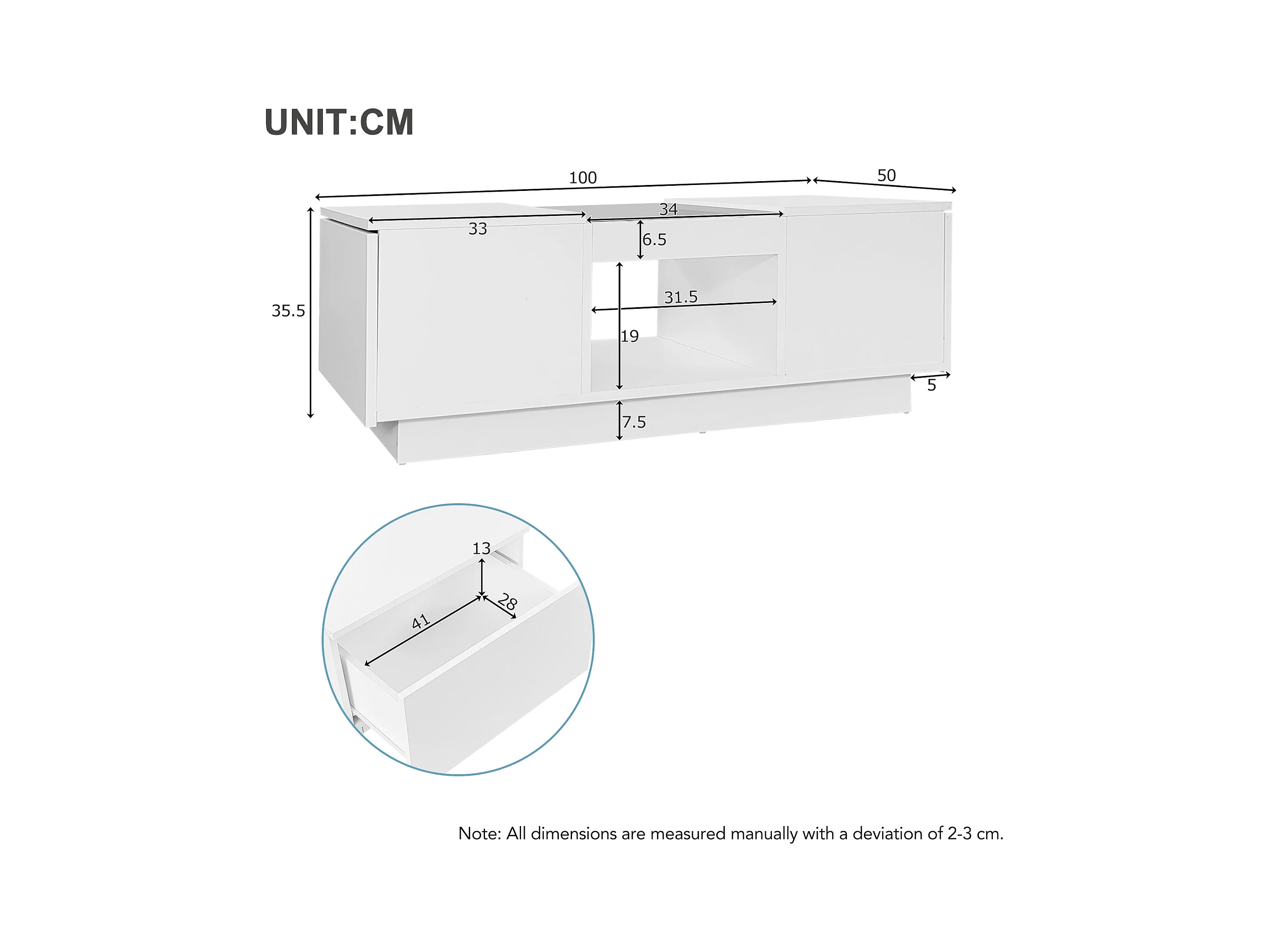 Salontafel 100x60x41,5 cm met twee lades MDF-materiaal in wit voor woonkamer