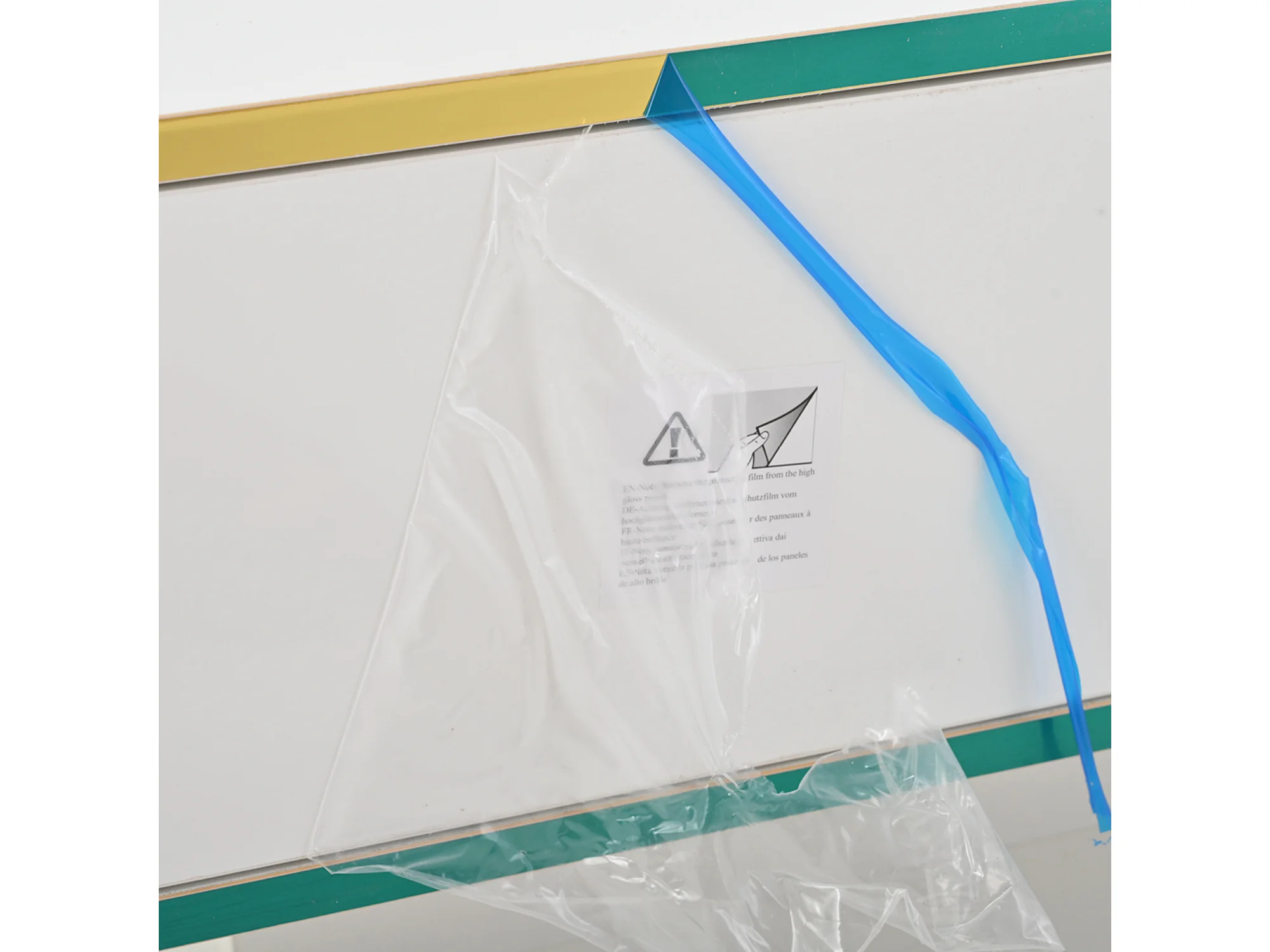 Salontafel 95x50x425 cm glanzend 4 glazen bladen 2 lades 2 planken wit voor woonkamer