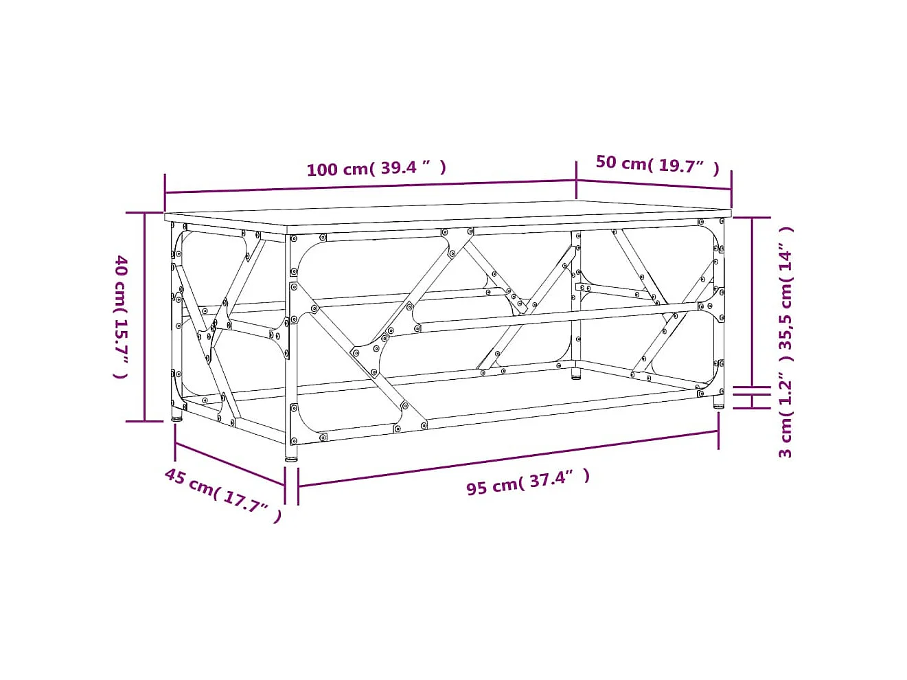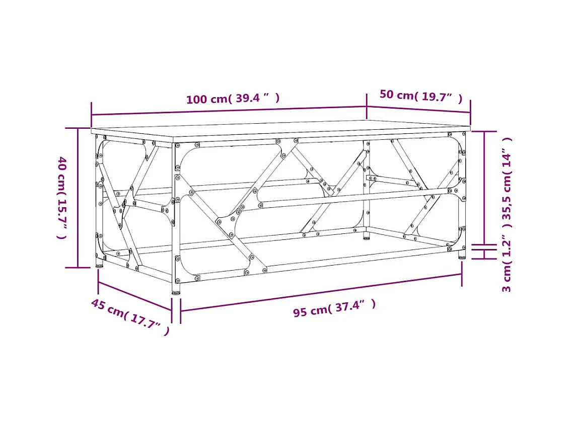 Salontafel 100x50x40 cm bewerkt hout zwart eikenkleurig
