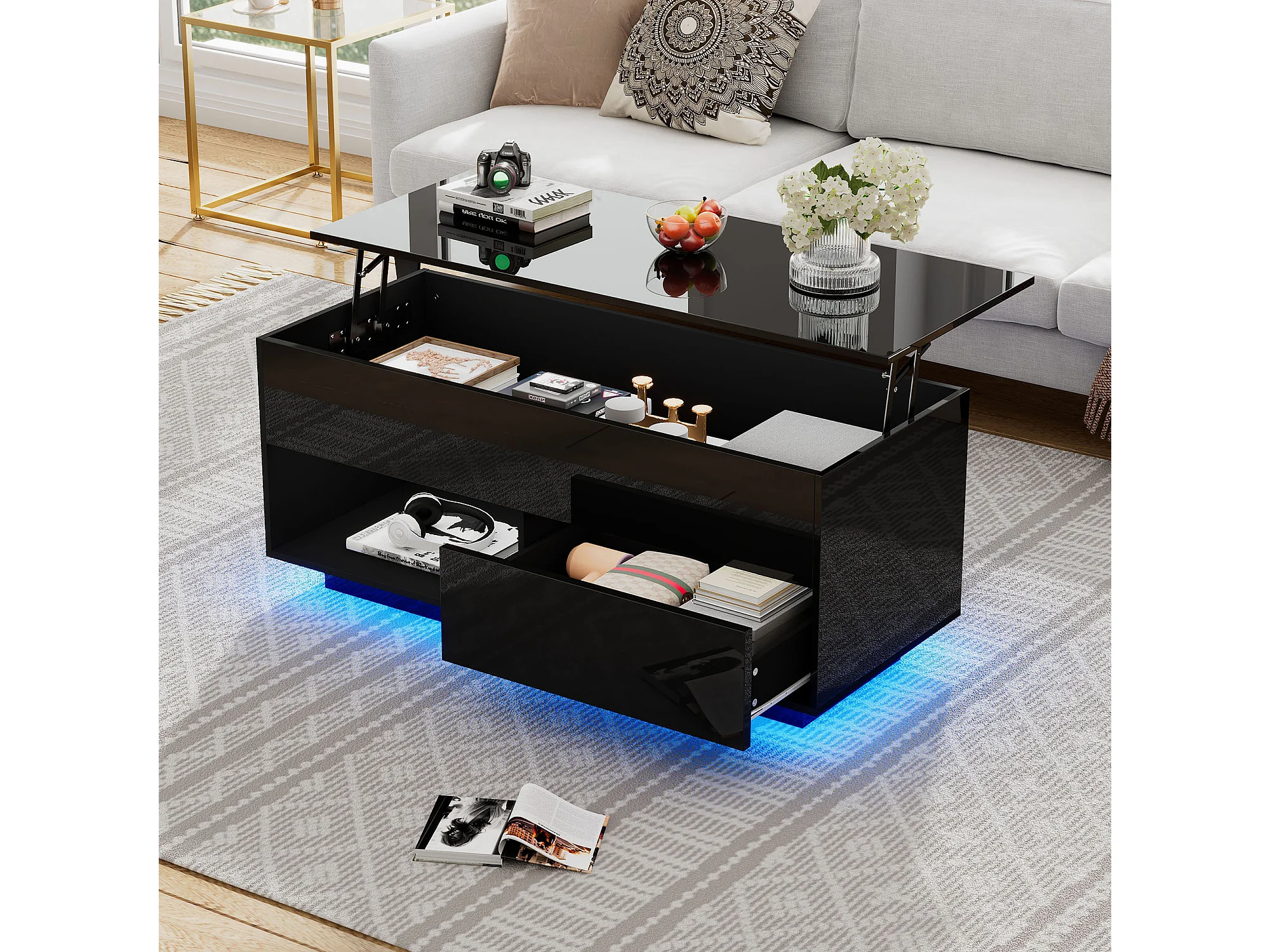 Salontafel 100x50x40 cm LED verstelbare lade geïntegreerde opbergdoos zwart moderne woonkamer