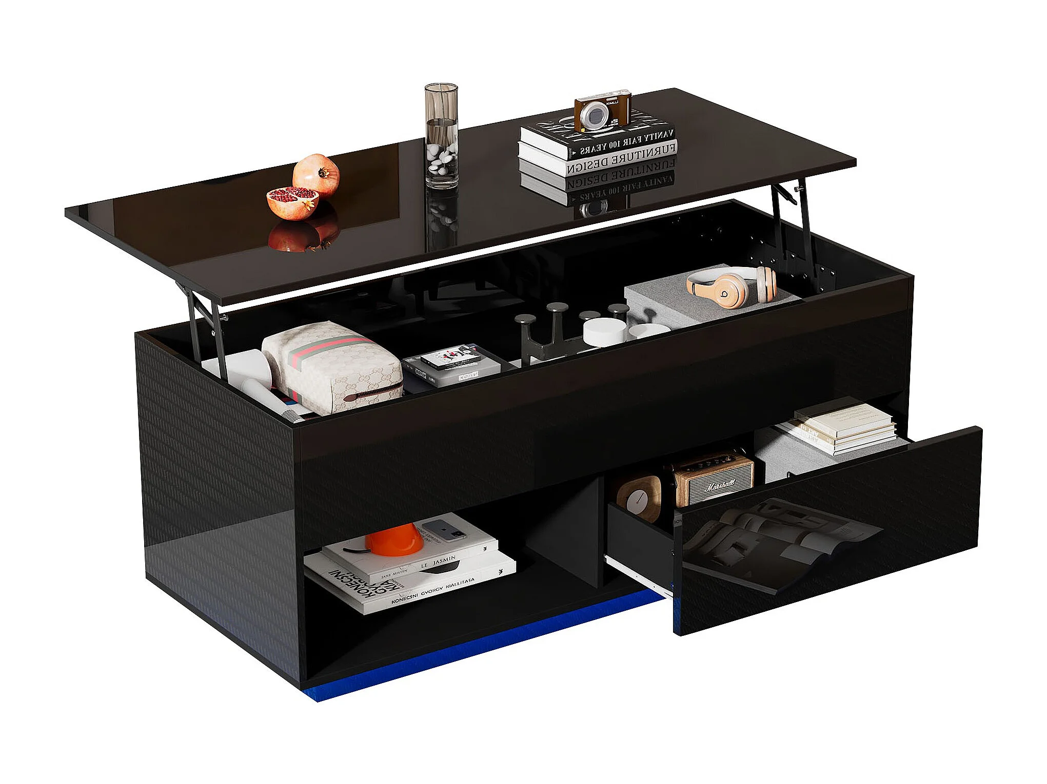 Salontafel 100x50x55cm LED Hydraulisch Hefsysteem Meerlaagse Opbergruimte Zwart voor Woonkamer