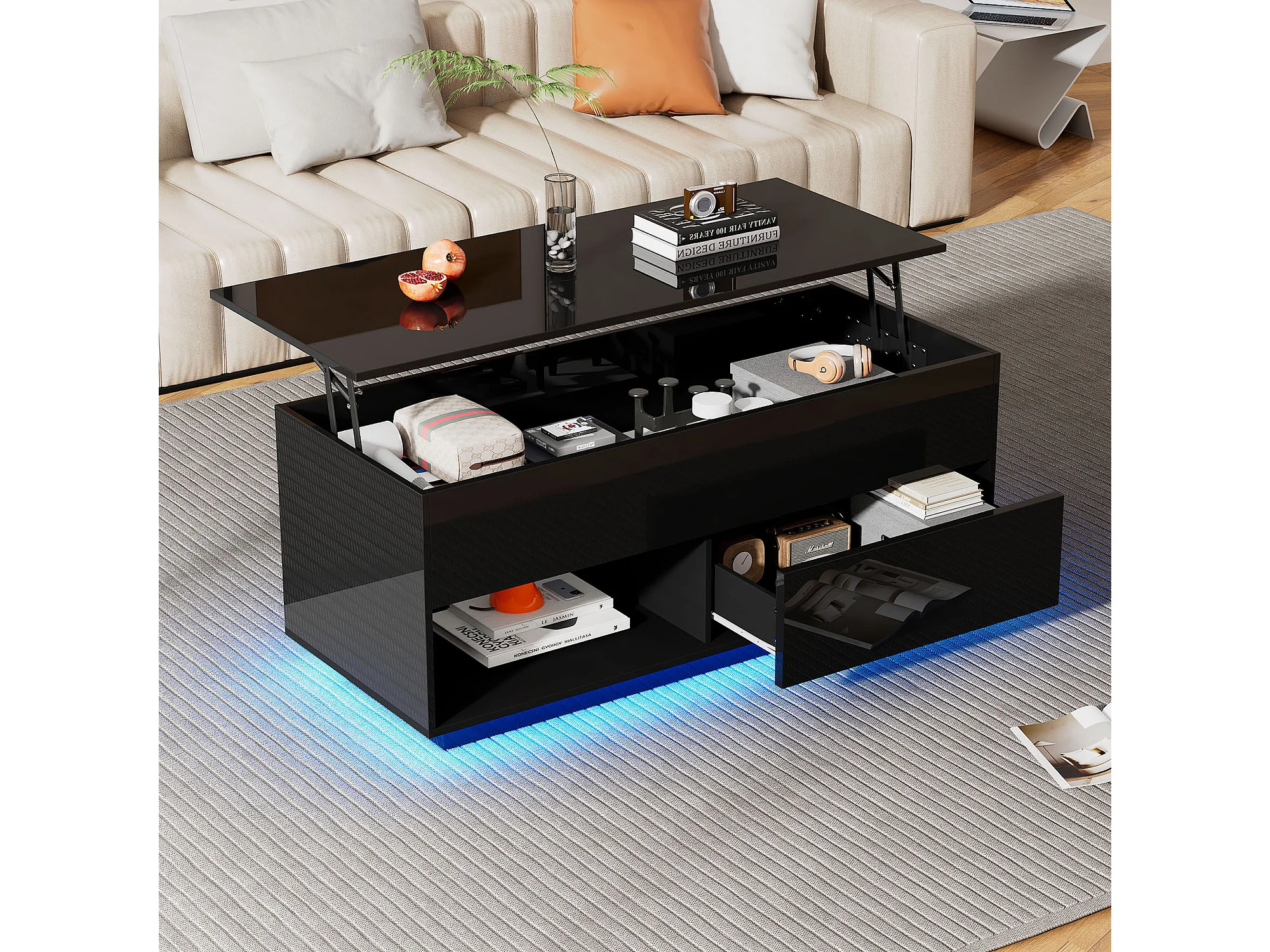 Salontafel 100x50x35cm hydraulische lift LED-verlichting verborgen opbergruimte zwart voor woonkamer
