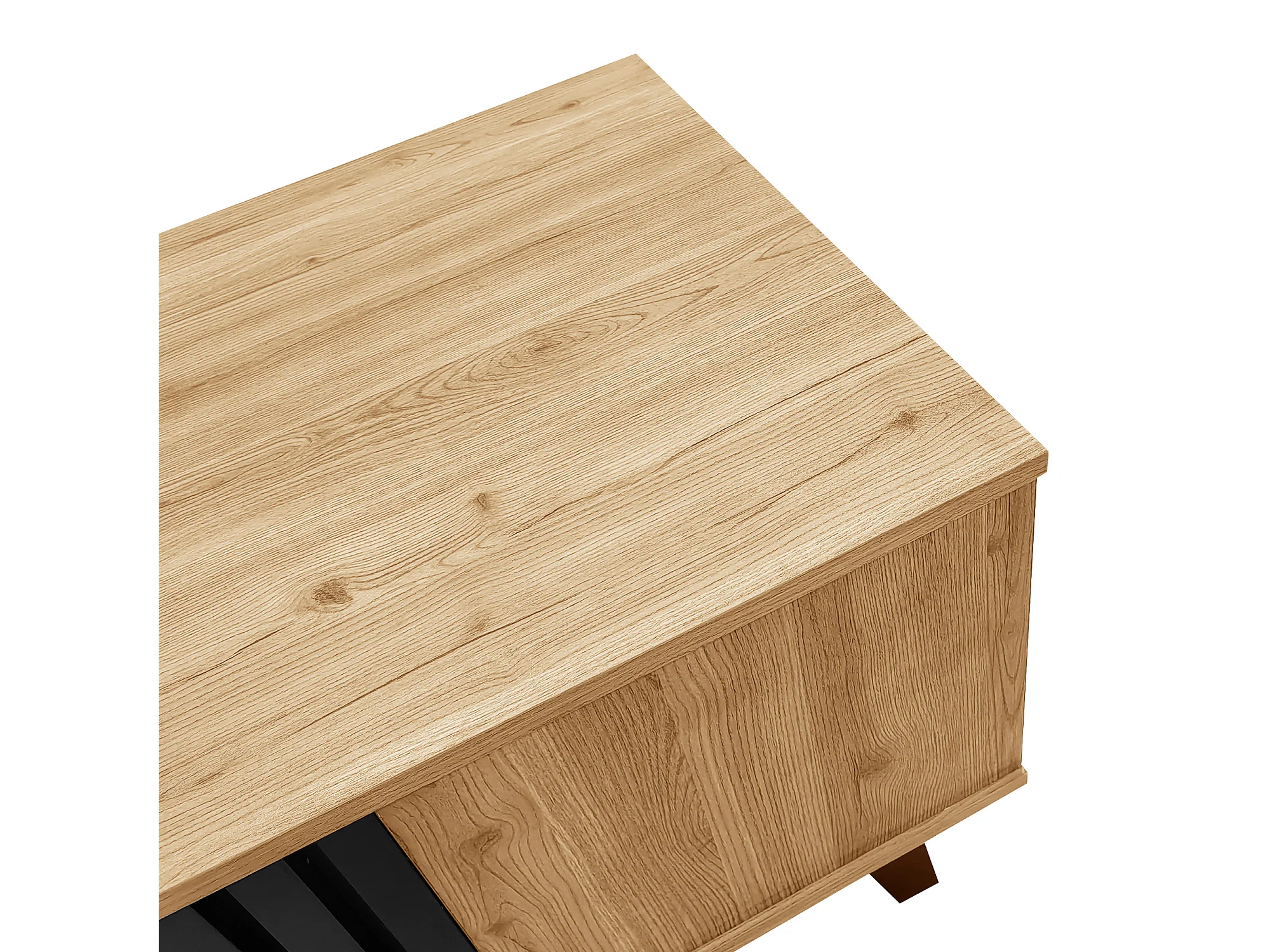 Salontafel met lade en ledverlichting, naturel en zwart, vintage stijl