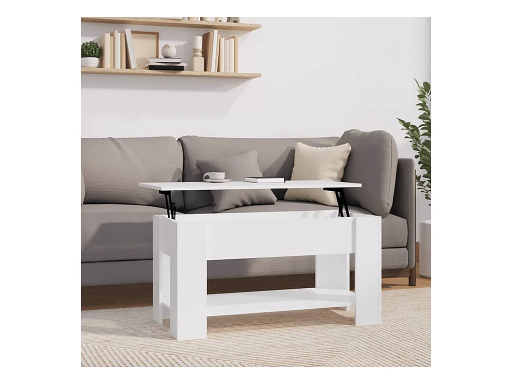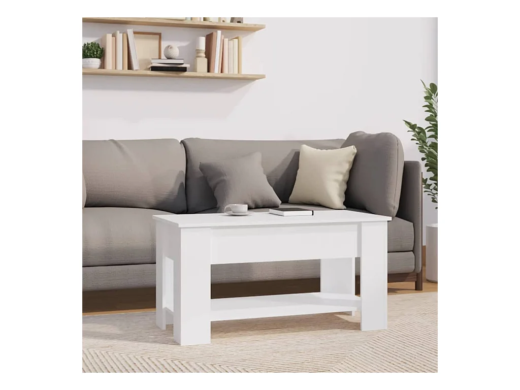 Moderne opklapbare salontafel met laden en schuifdeuren, functioneel design, spaanplaat, wit (120x65x45,5 cm)