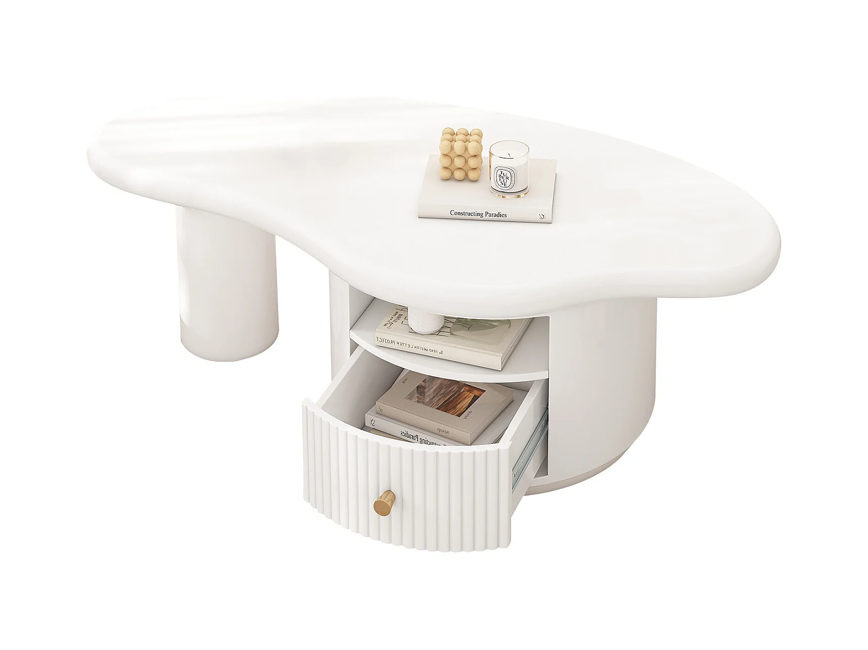 Salontafel 110x60x375 cm onregelmatige wolkvorm MDF blad met lade Wit voor woonkamer