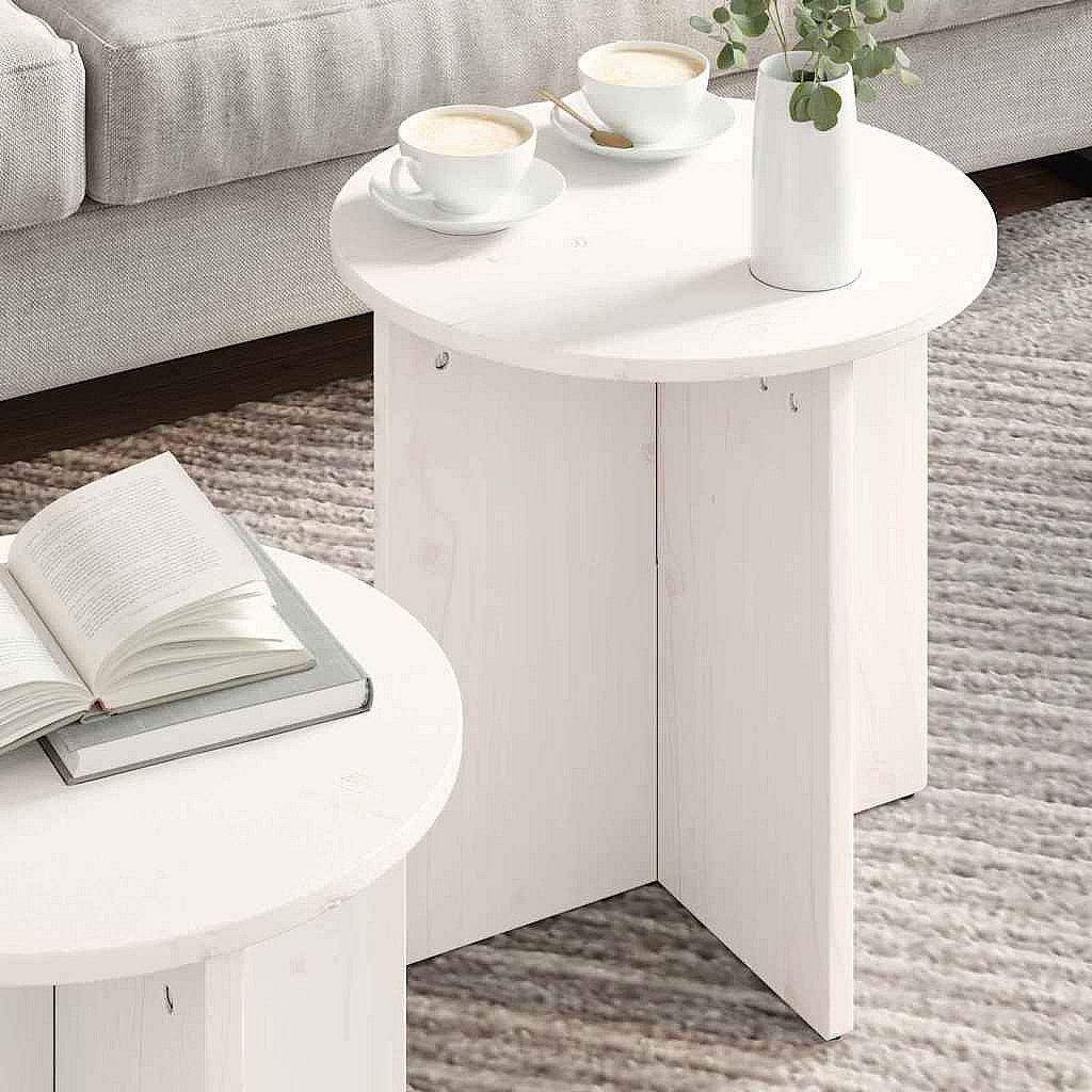 Salontafel 2 pcs Wit 47.5 x 47.5 x 27 cm Massief grenenhout