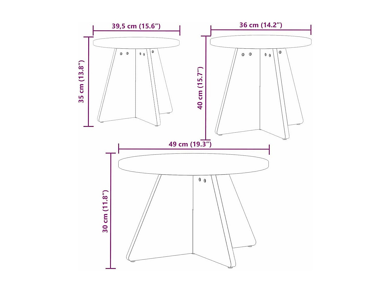 Salontafel 3 pcs Naturel 49 x 49 x 30 cm Massief grenenhout