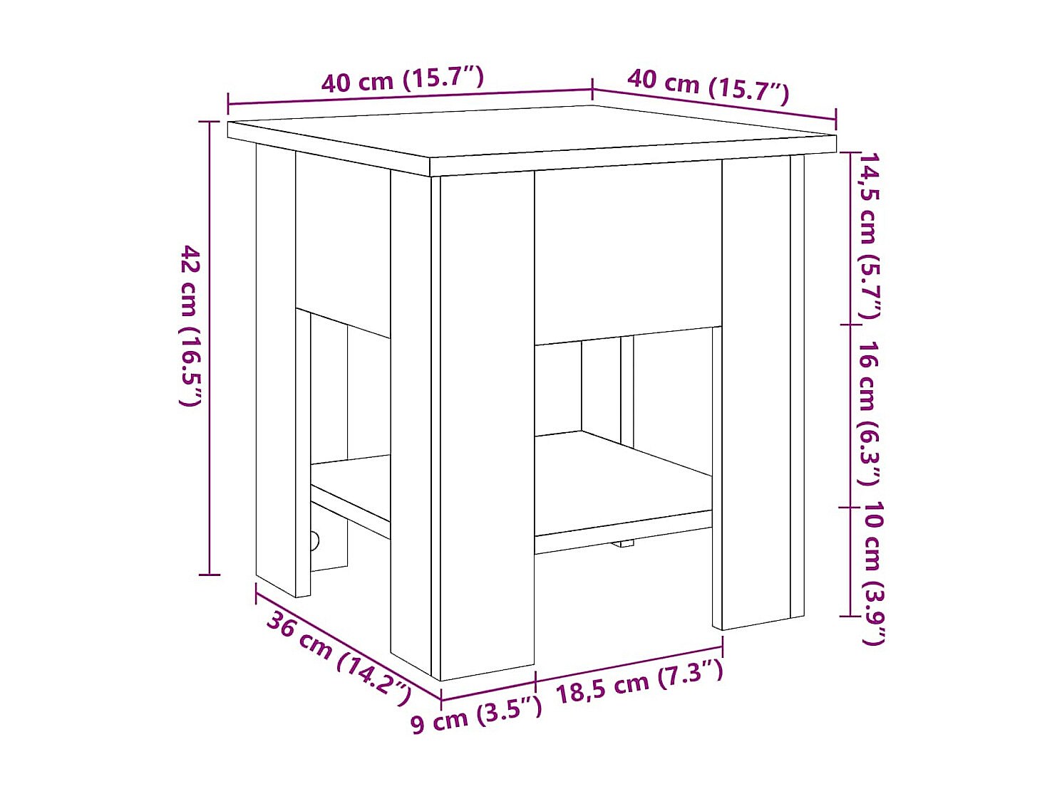Salontafel 40x40x42 cm bewerkt hout oud houtkleurig
