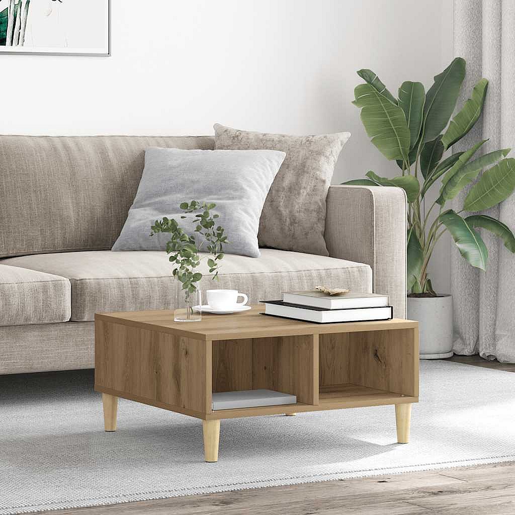 Salontafel artisanaal eikenkleurig 60 x 60 x 30 cm Bewerkt hout