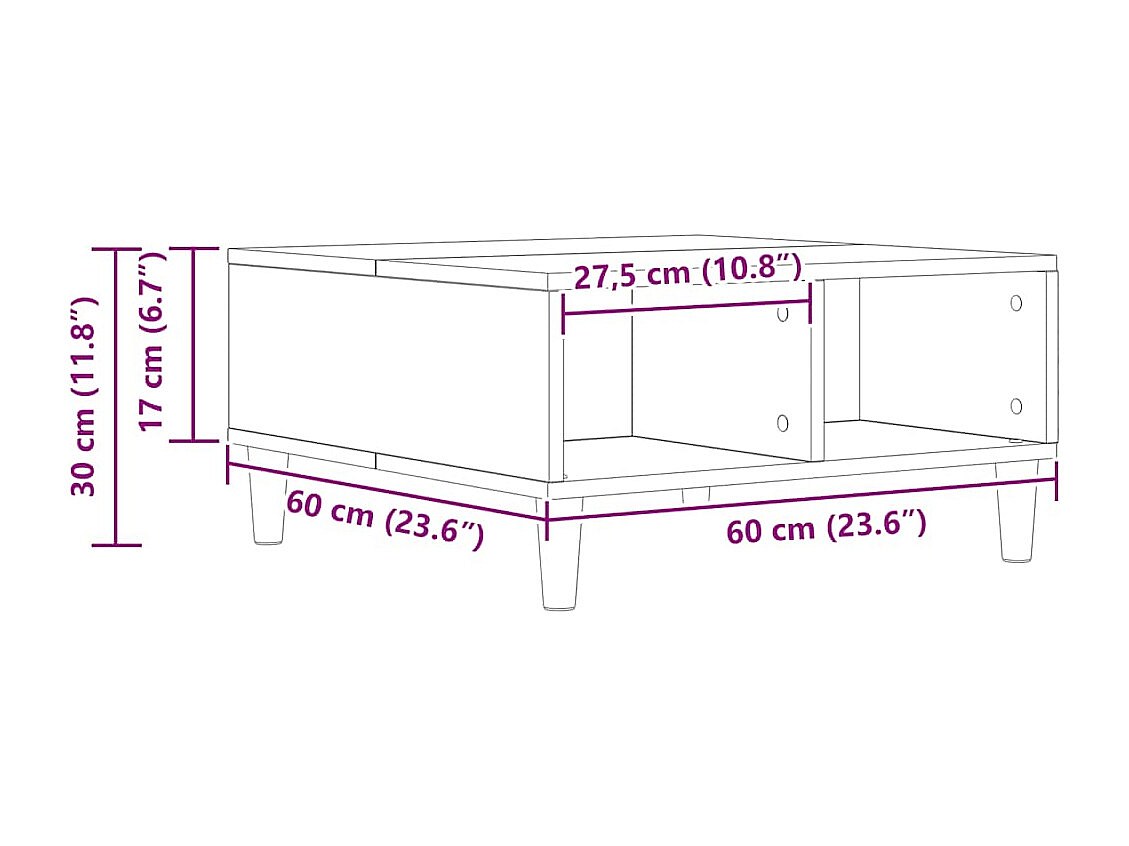 Salontafel 60x60x30 cm spaanplaat bruin eikenkleur
