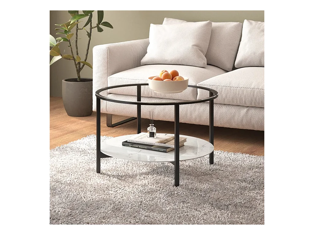 Salontafel 70 cm gehard glas zwart en witmarmer