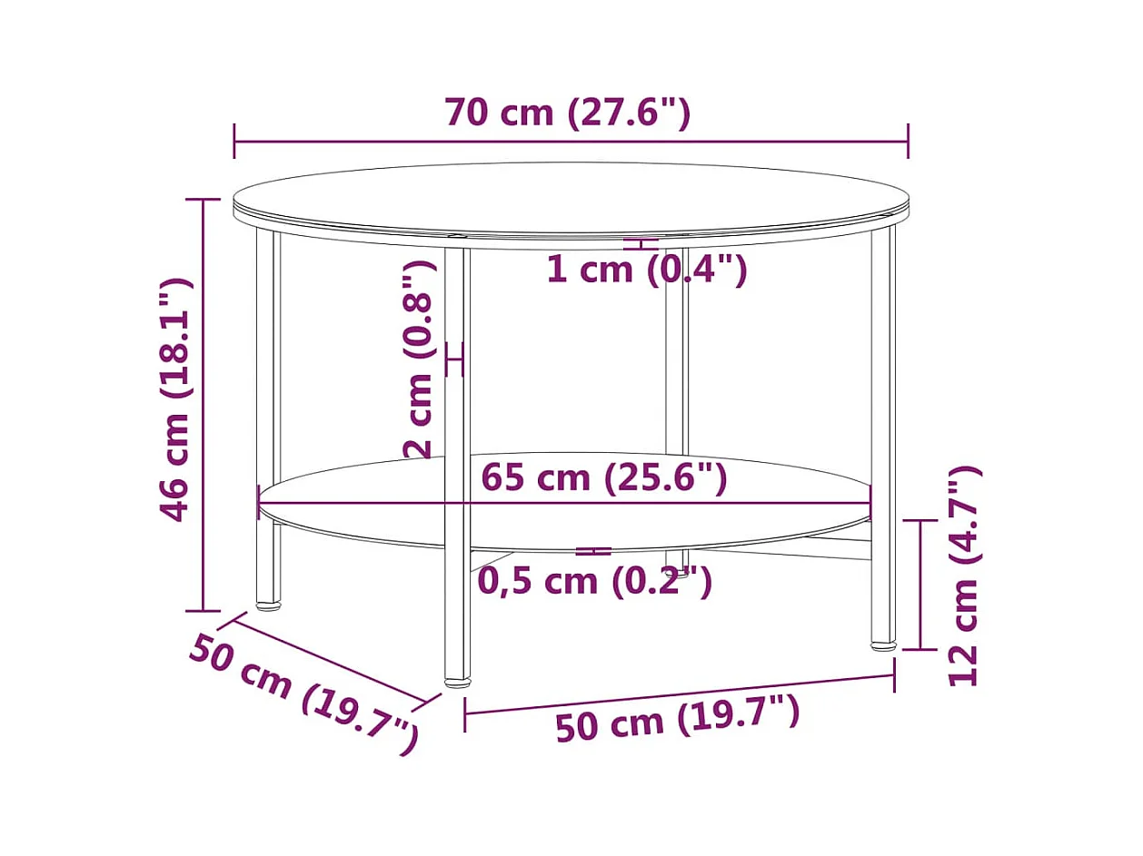 Salontafel 70 cm gehard glas zwart en zwartmarmer