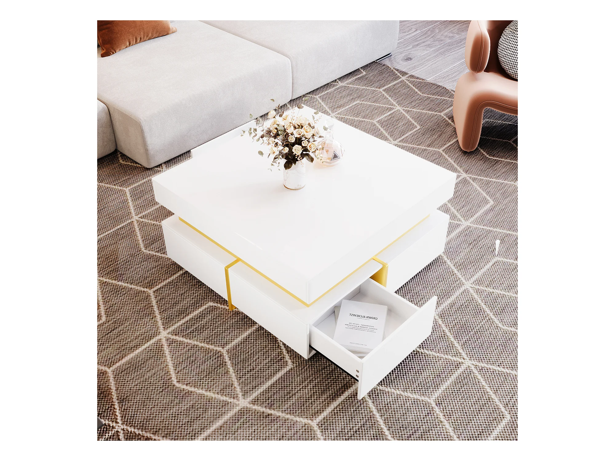 Draaibare salontafel 70x70x36 cm 2 draaibare laden geïntegreerde opbergruimte glanzend wit zwart moderne woonkamer