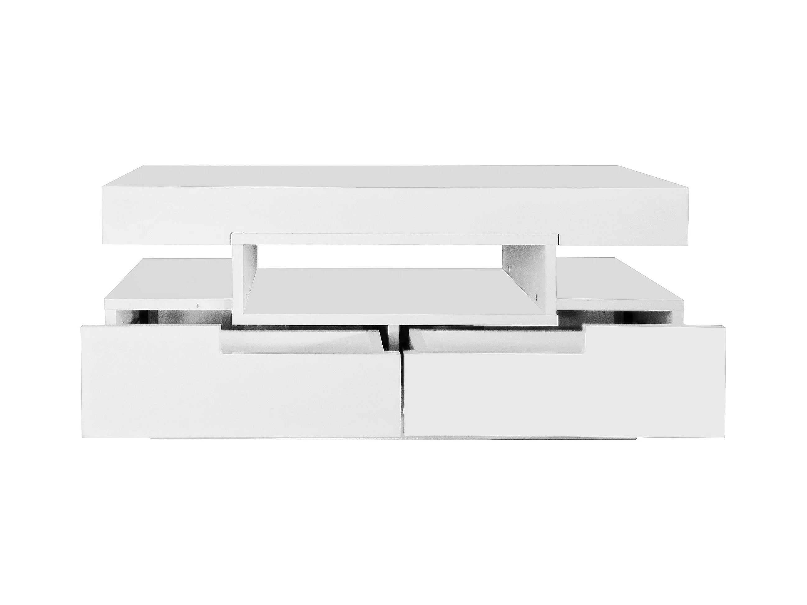 Salontafel 80x50x36cm met LED lichtstrip drie open compartimenten en vier verborgen laden brengen Materiaal Spaanplaat en Wit