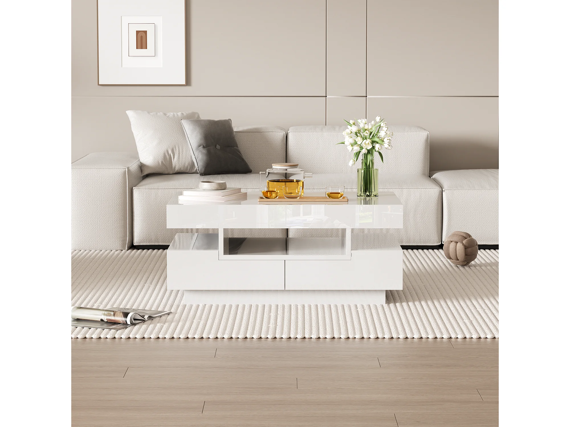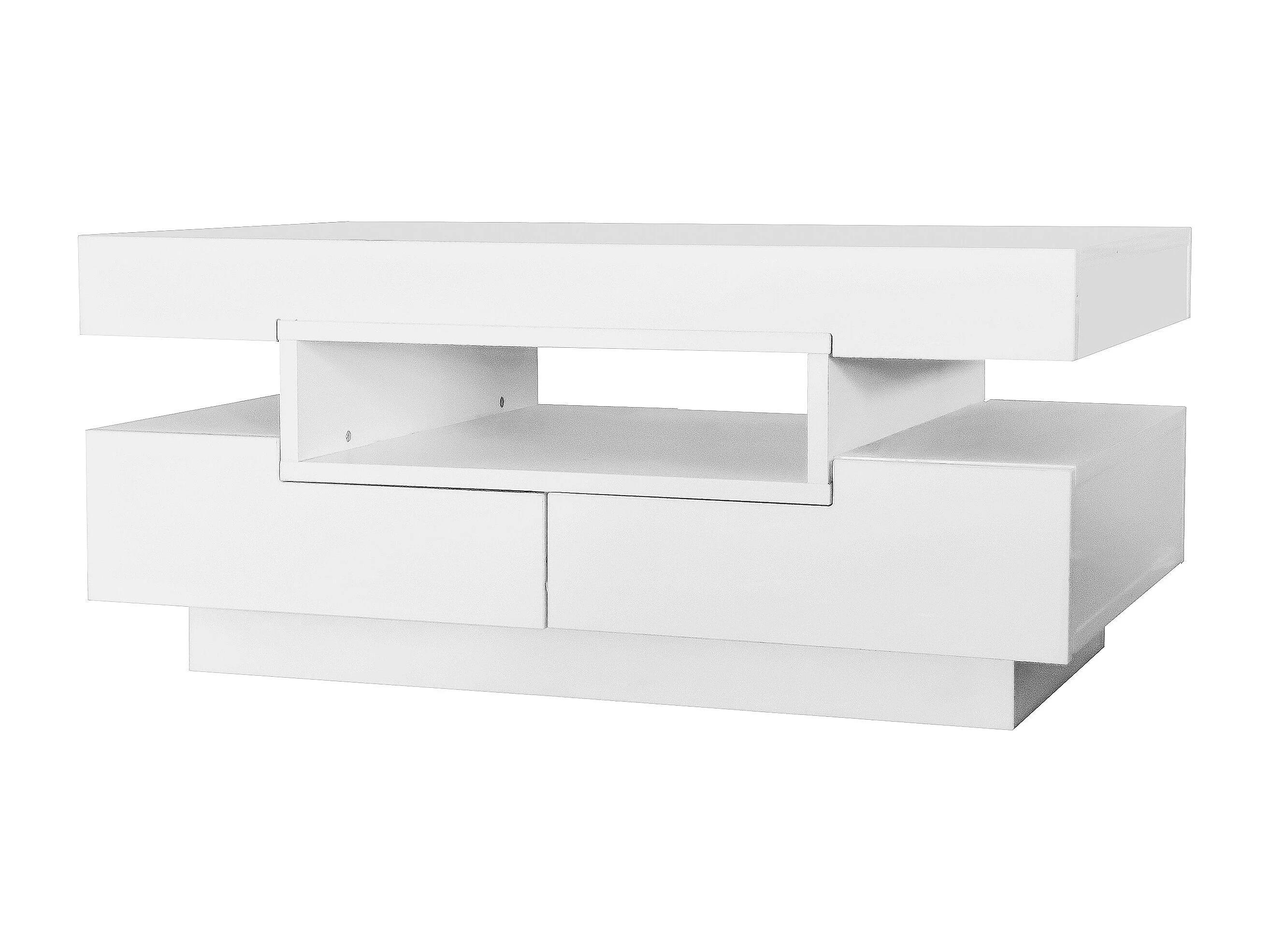 Salontafel 80x50x36 cm, verstelbare LED-strip, 4 laden, 3 open nissen, spaanplaat, wit