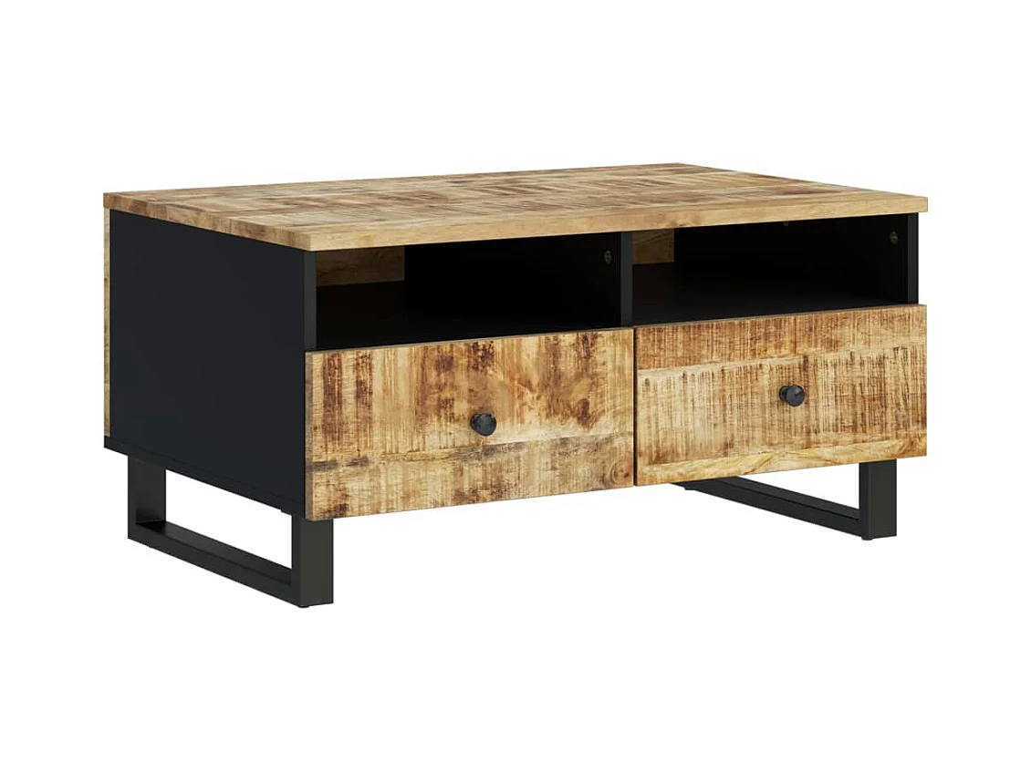 Salontafel 80x54x40 cm massief mangohout bruin en zwart