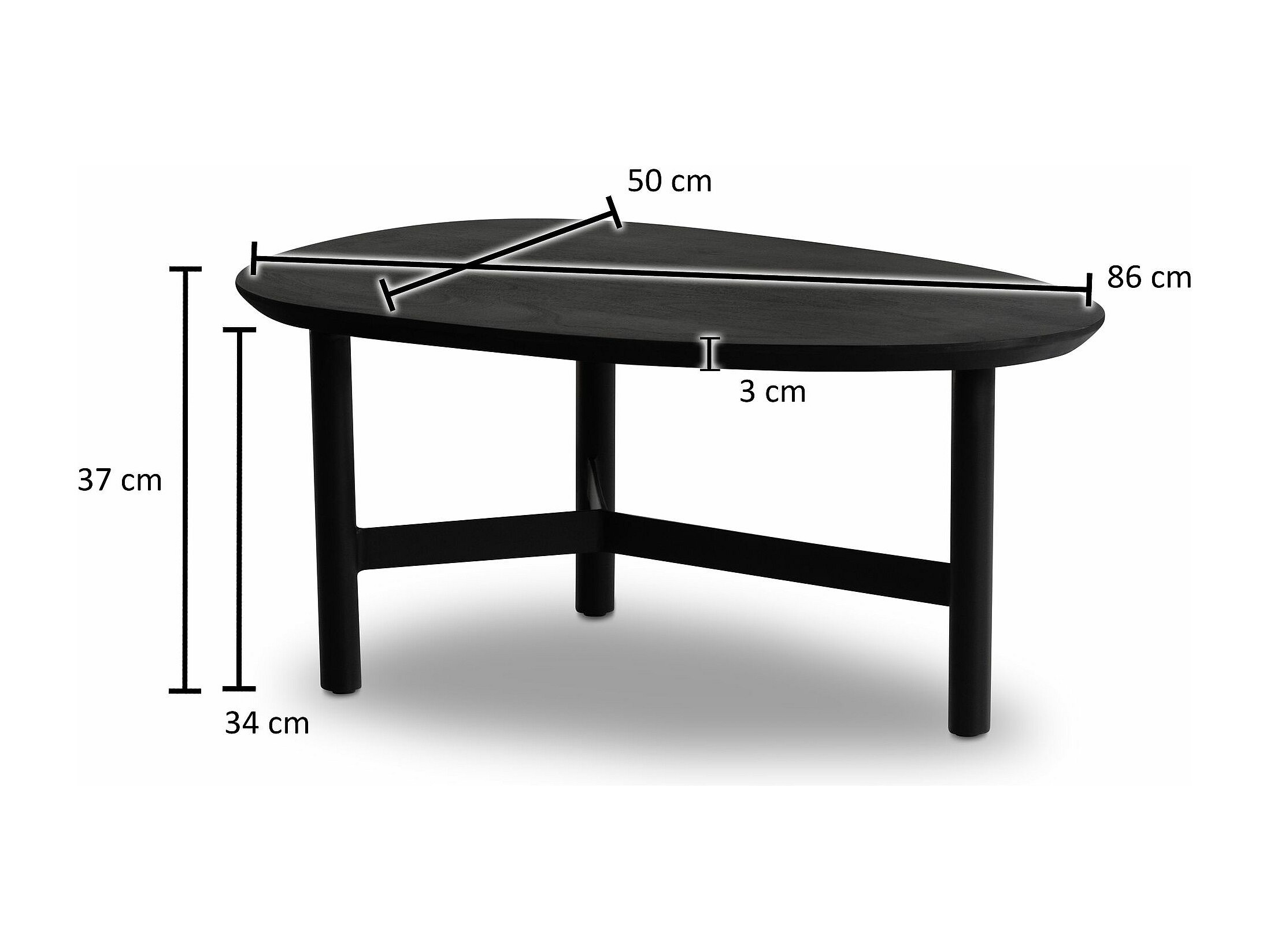 salontafel 86x50x37 cm mango massief hout / metaal zwarte salontafel | Design woonkamertafel niervorm | Driepoot salontafel woonkamer modern