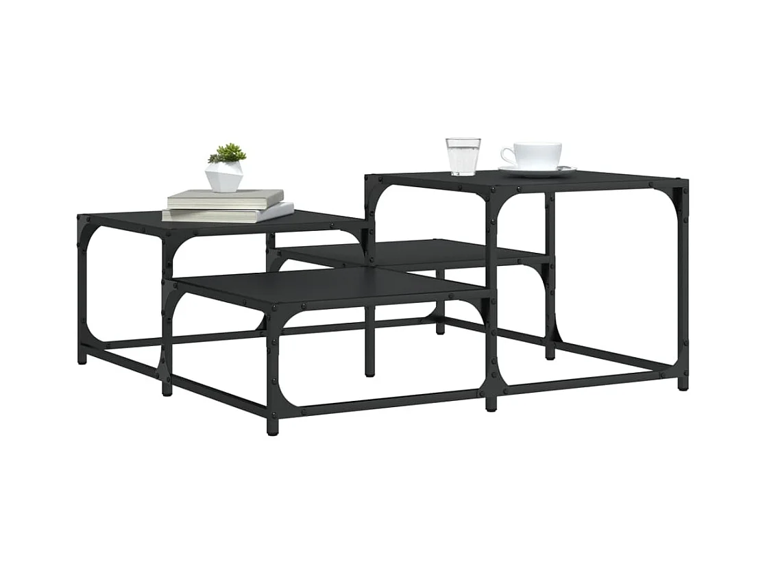 Salontafel met zwart glazen blad 78,5x40x40 cm staal