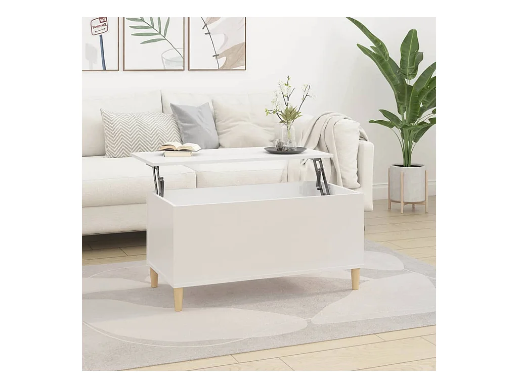 Salontafel 90x44,5x45 cm bewerkt hout hoogglans wit