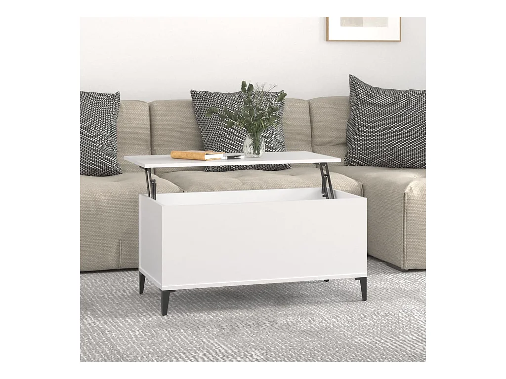 Salontafel 90x44,5x45 cm bewerkt hout hoogglans wit
