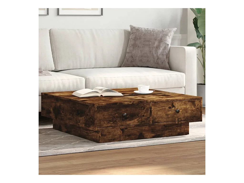 Salontafel 90x90x28 cm bewerkt hout gerookt eikenkleurig