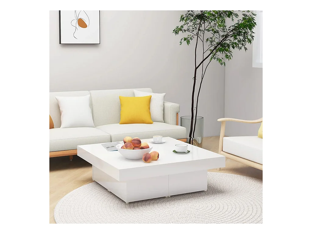 Dvalzani salontafel, Lage salontafel, Tijdschriftenrek voor bank, Woonkamerplank, 81x81 h45 cm, Wit