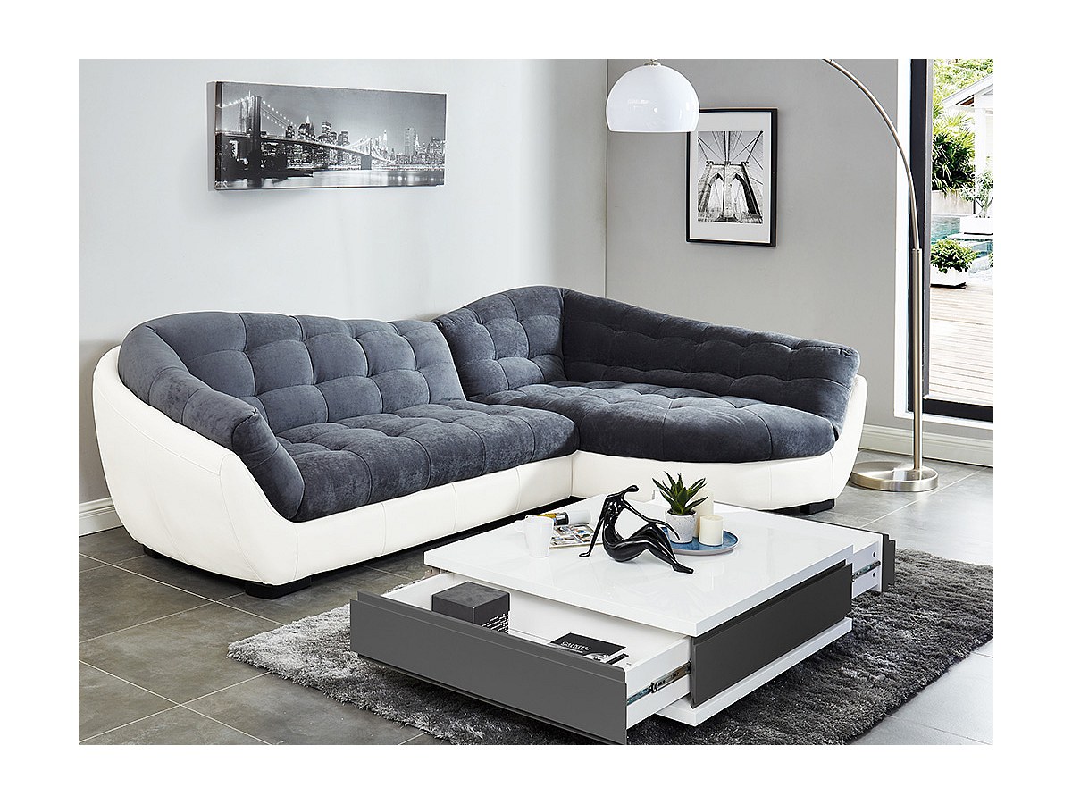 Salontafel ALCIDE - 2 laden - MDF - Wit en grijs