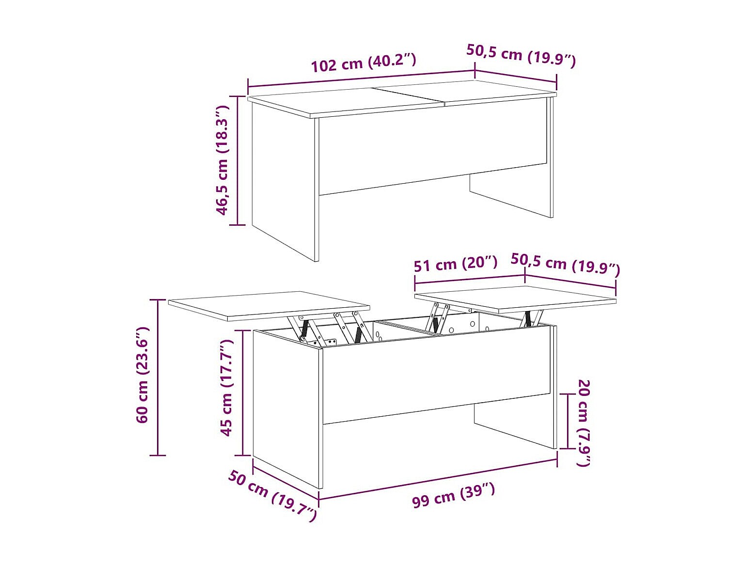 Draaibare salontafel met verborgen opbergruimte, spaanplaat, natuurlijke kleur (85,2x80x45,2 cm)