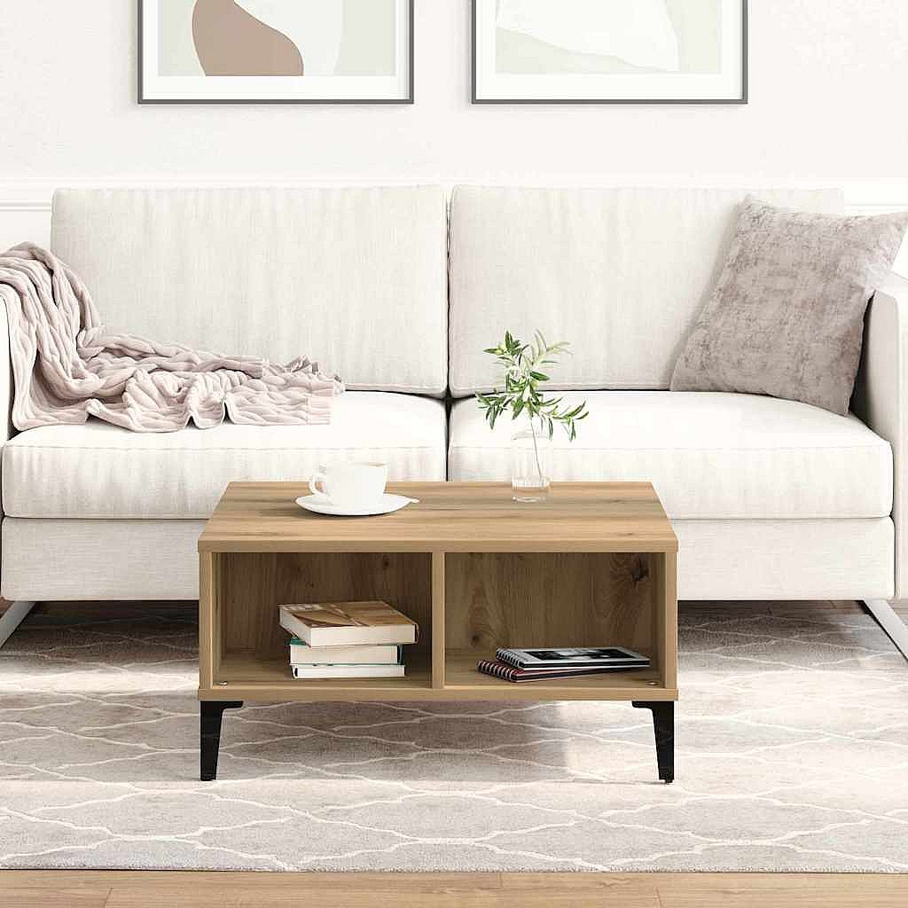 Salontafel 100x100x30 cm bewerkt hout en metaal sonoma eiken