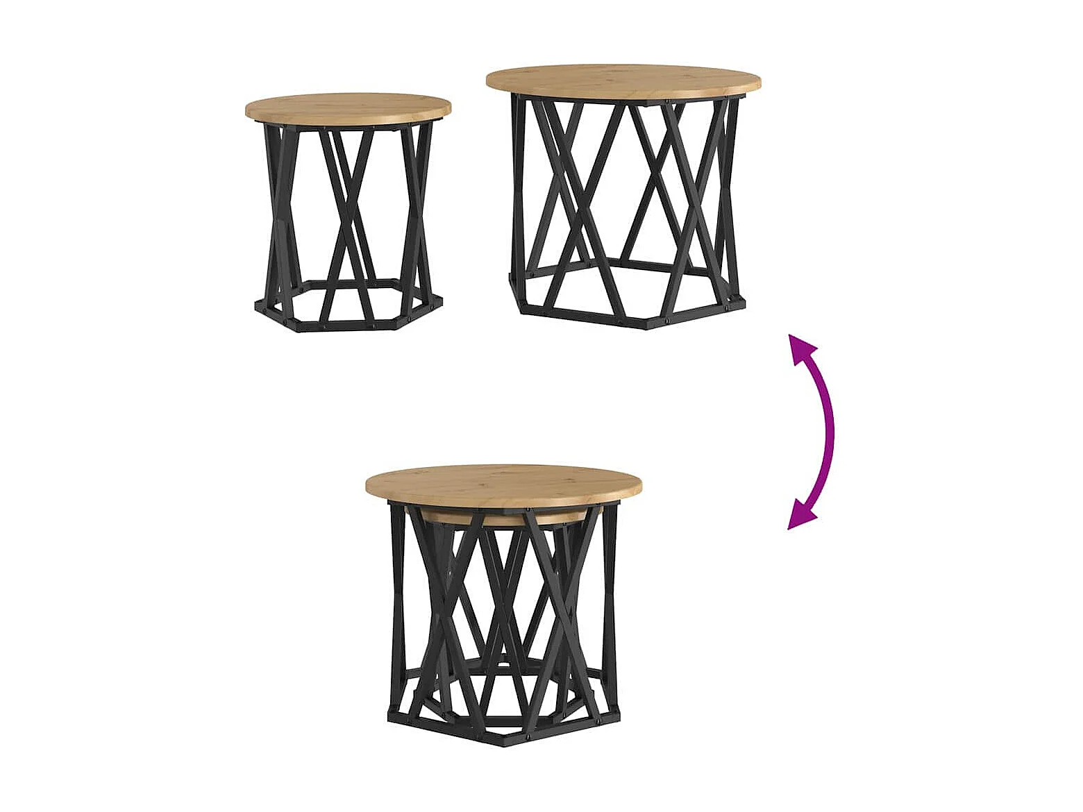 Salontafel - Bijzettafel - Koffietafel 2 pcs artisanaal eikenkleurig 50 x 50 x 40 cm