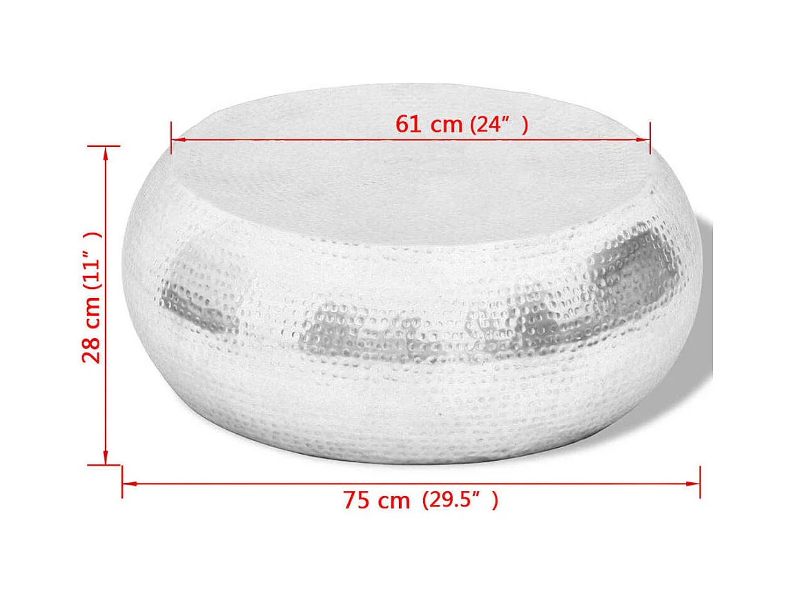 Salontafel gehamerd aluminium zilverkleurig