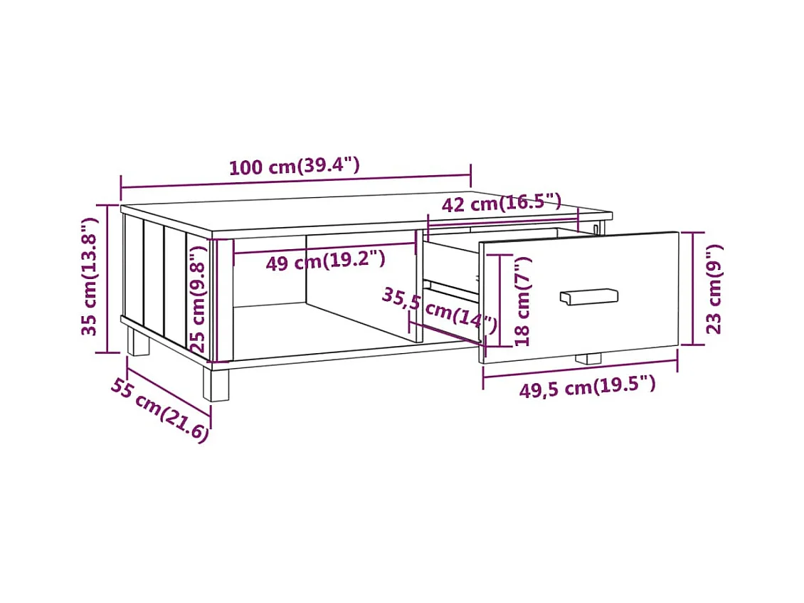 Salontafel HAMAR 100x55x35 cm massief grenenhout honingbruin