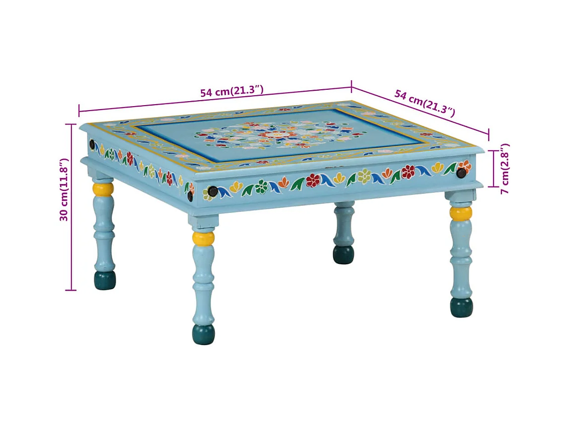 Salontafel handbeschilderd massief mangohout turquoise