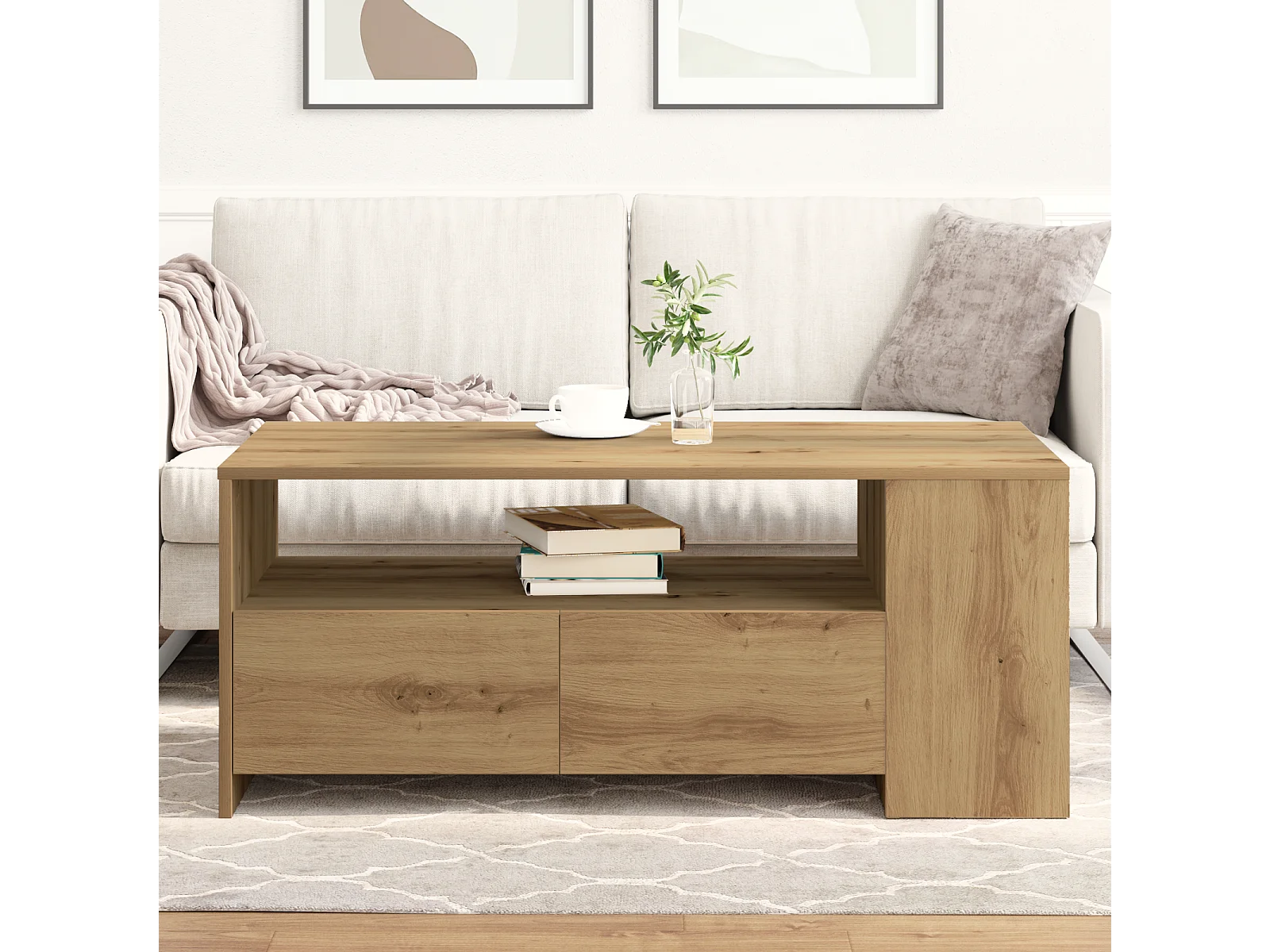 Salontafel - Handgemaakt eikenhout - 102x55x43,5 cm - Gemaakt van bewerkt hout