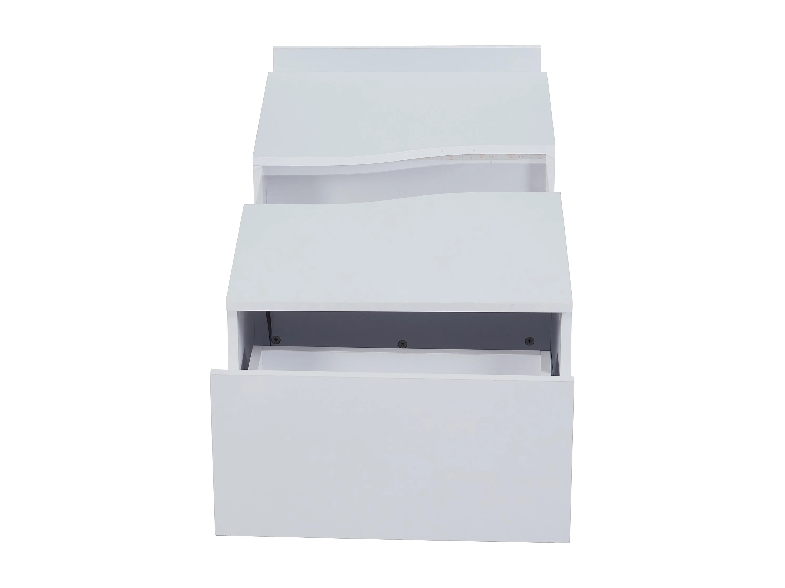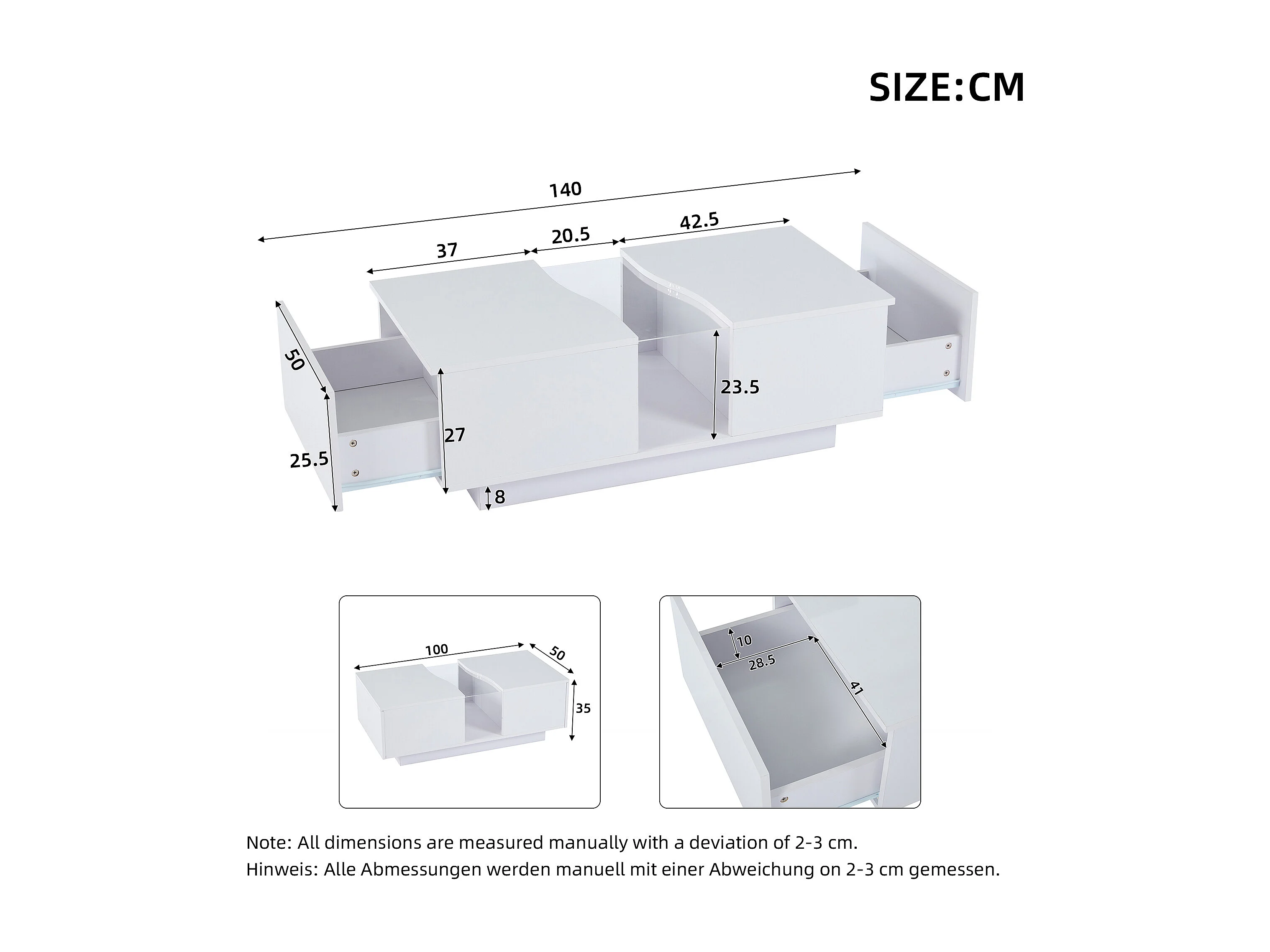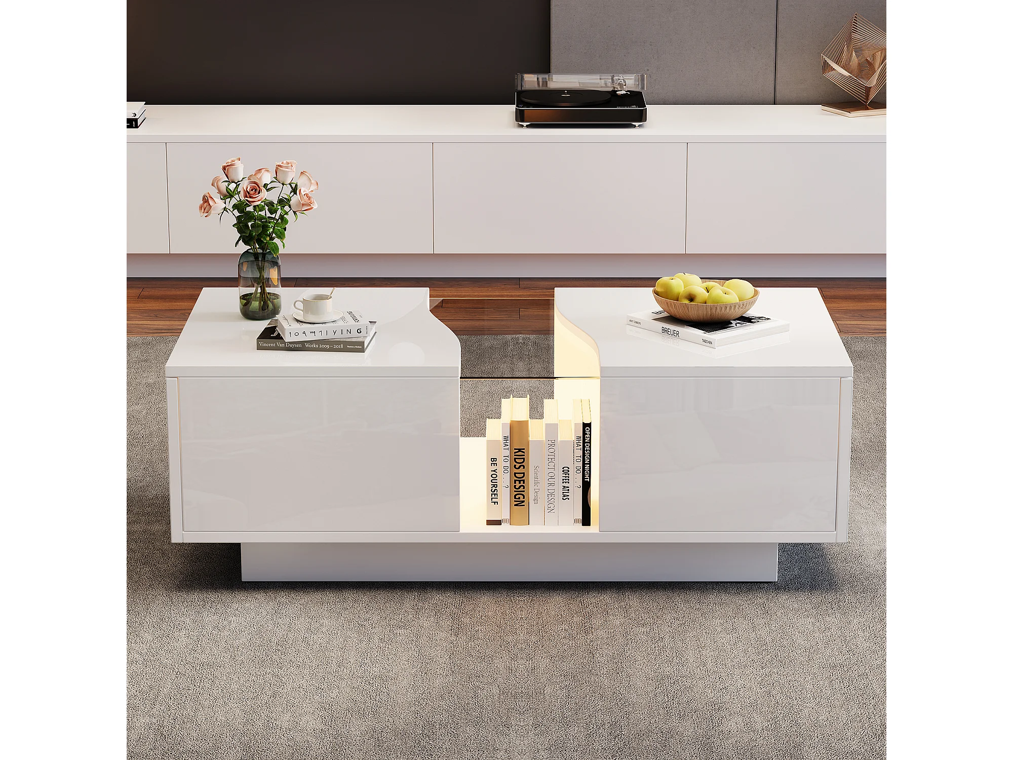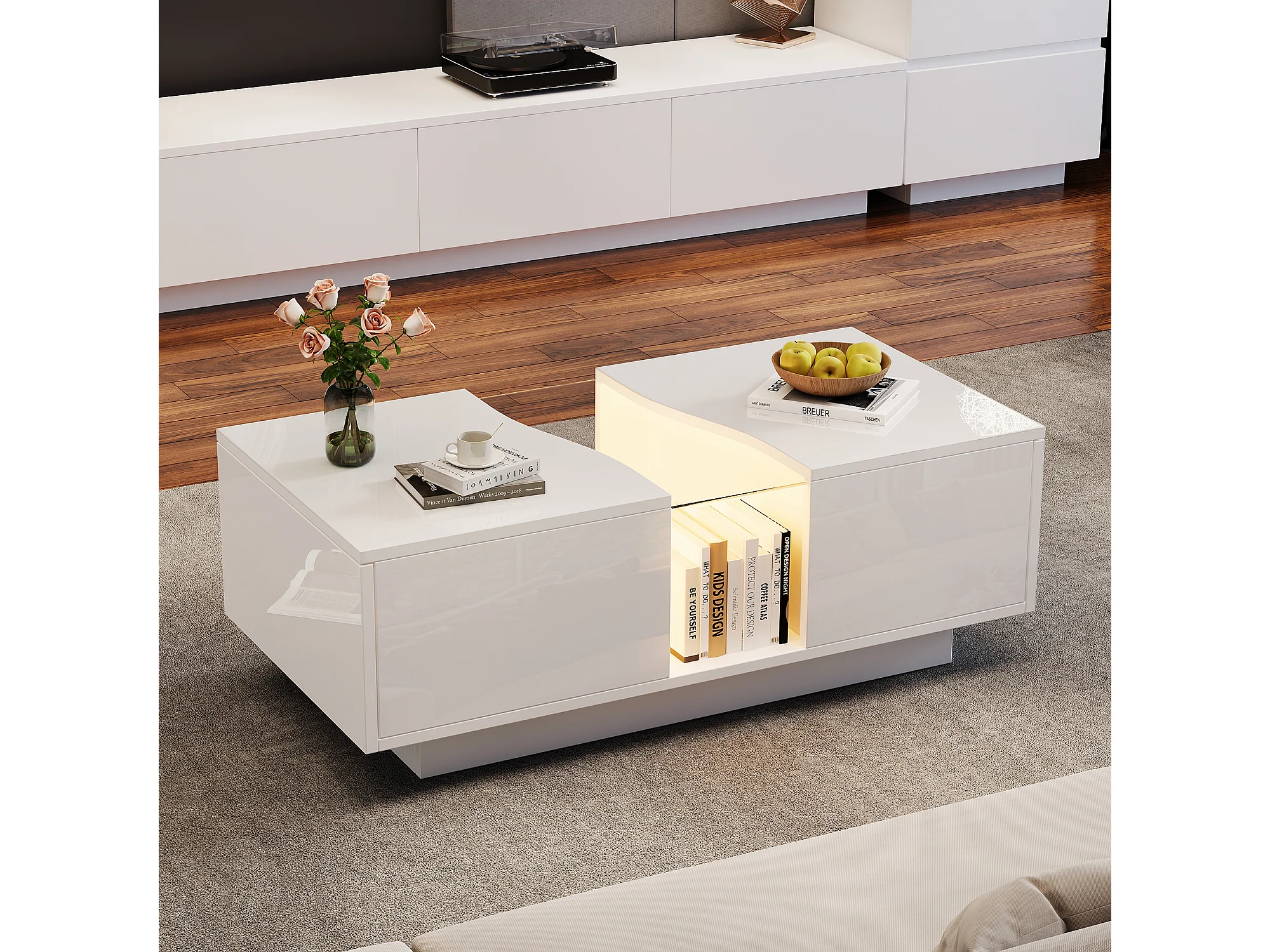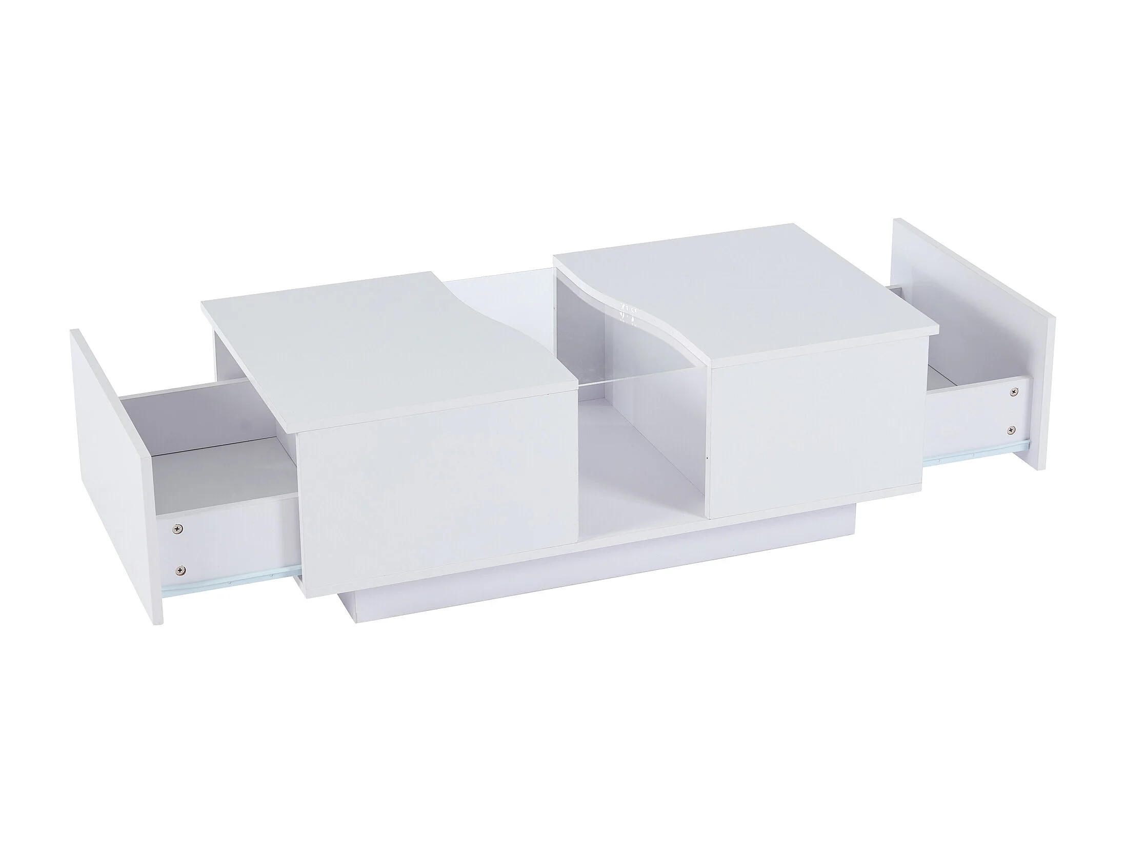 Salontafel met 2 lades en LED, in MDF en acryl, in hoogglans witte lak