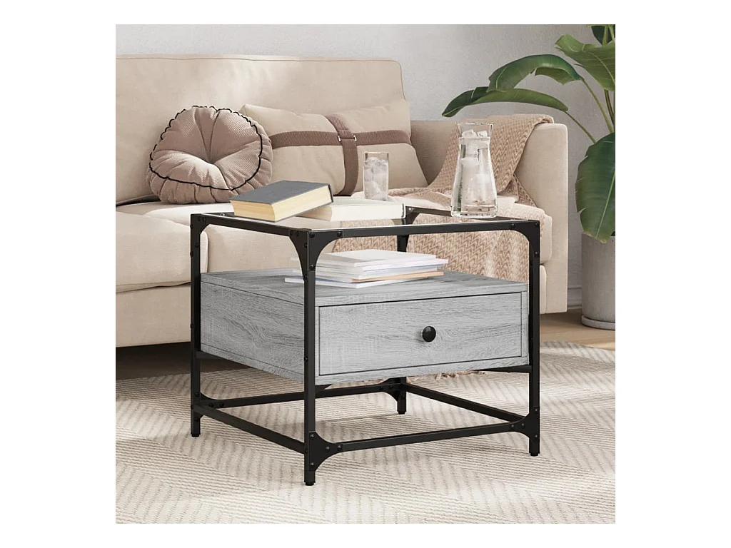 Salontafel met glazen blad 50x50x45 cm staal